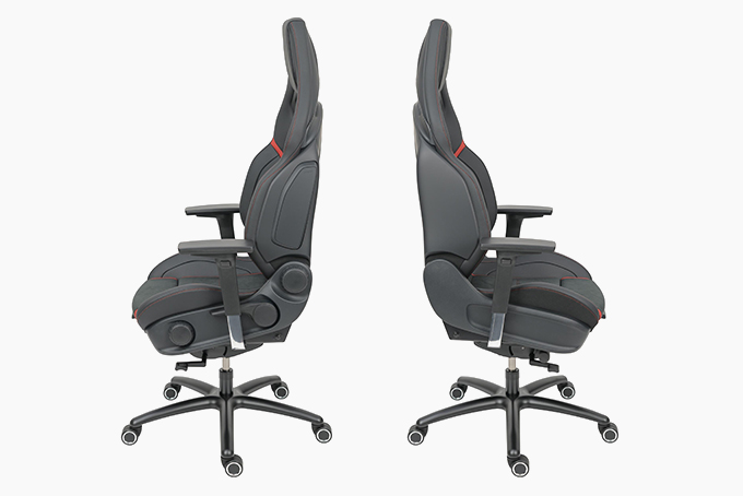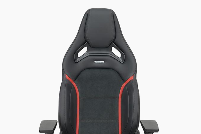 AMG辦公椅跟車用的座椅是出自同一間製造工廠,所以也完整的移植了車用座椅的舒適度與工藝水準,AMG辦公椅具備黑色的椅背、腿部延伸機構以及一組可旋轉三十度並且自帶寬度與高度可調的3D扶手組,一體式的頭枕與醒目的蝴蝶翼強化包覆感與豪華氛圍,同時也提高了人體工學舒適度。