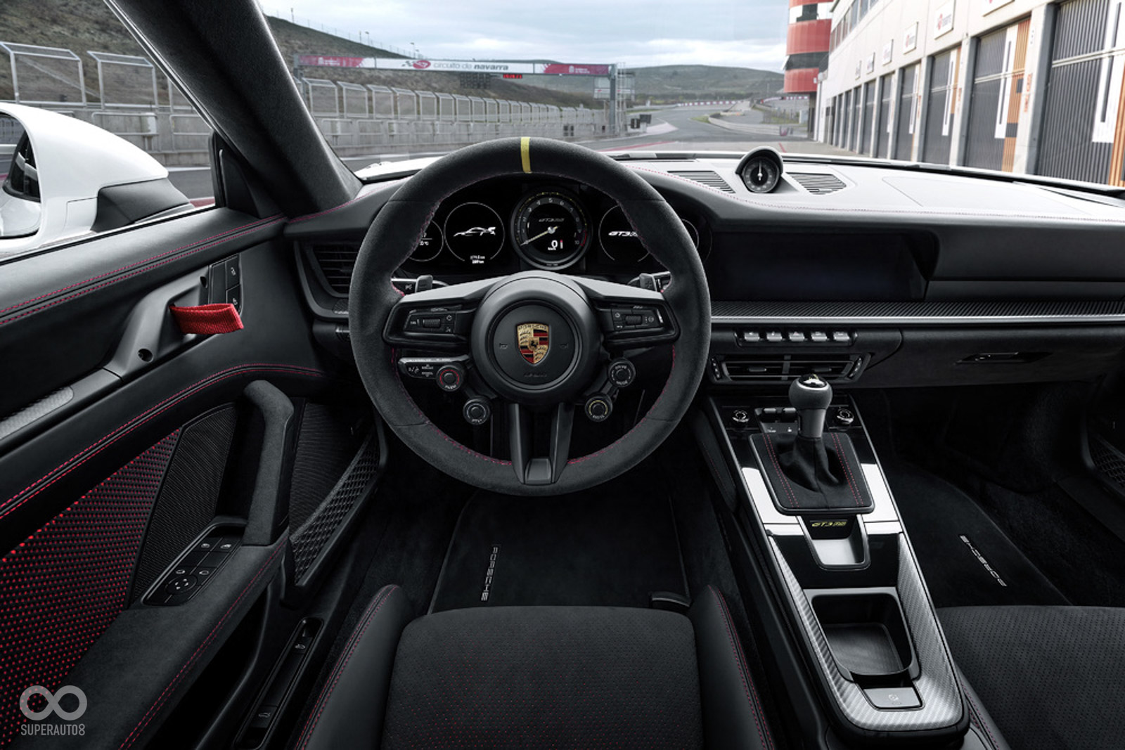 全新911 GT3 RS的車艙內飾依然保有經典的RS風格,以黑色真皮、Race-Tex搭配碳纖維編織飾板凸顯純粹的運動化氛圍;並可免費升級Clubsport賽車套件,包括鋼製防滾架、手持滅火器以及駕駛座六點式安全帶。需要額外增加費用的Weissach套件也增加更多項目,包含在車前蓋、車頂、後視鏡外蓋及部分尾翼皆以碳纖維紋路裝飾,並且在前/後軸的防傾桿、後連結桿及剪力板皆以CFRP打造,有助於提升整體的動態操駕反應。首次使用CFRP打造的防滾架相較於鋼製版本可減少約 6 公斤重量,Weissach套件的另一個亮點是PDK換檔撥片導入承襲賽車的磁極技術,透過更為精準的按壓觸點與清脆的按壓聲響帶來更為動感的換檔體驗,另外Weissach套件還可選配鍛造鎂合金輪圈,能再減輕8公斤車重。
