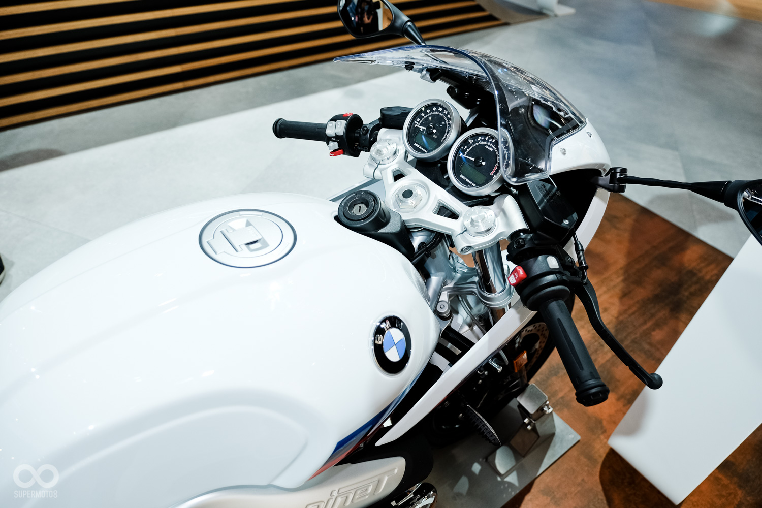 全車的基本架構維持R nineT的雛型,差別在於全車外觀套件改為復古的Café Racer造型。車頭維持原有的圓形大燈,但是多了復古的賽車頭罩,把手也改為分離式平把;另外也納入Café Racer最具代表的圓潤車尾與單座設計,將原本的副車架加長,在單座墊的後方增加車尾單座蓋,並配上動感的後大牌架。另一個特點是車身彩繪的線條,配色正好是BMW M POWER的淺藍、深藍與紅色線條,與白色基底組成BMW的識別色,強調R nineT Racer的性能基因。
