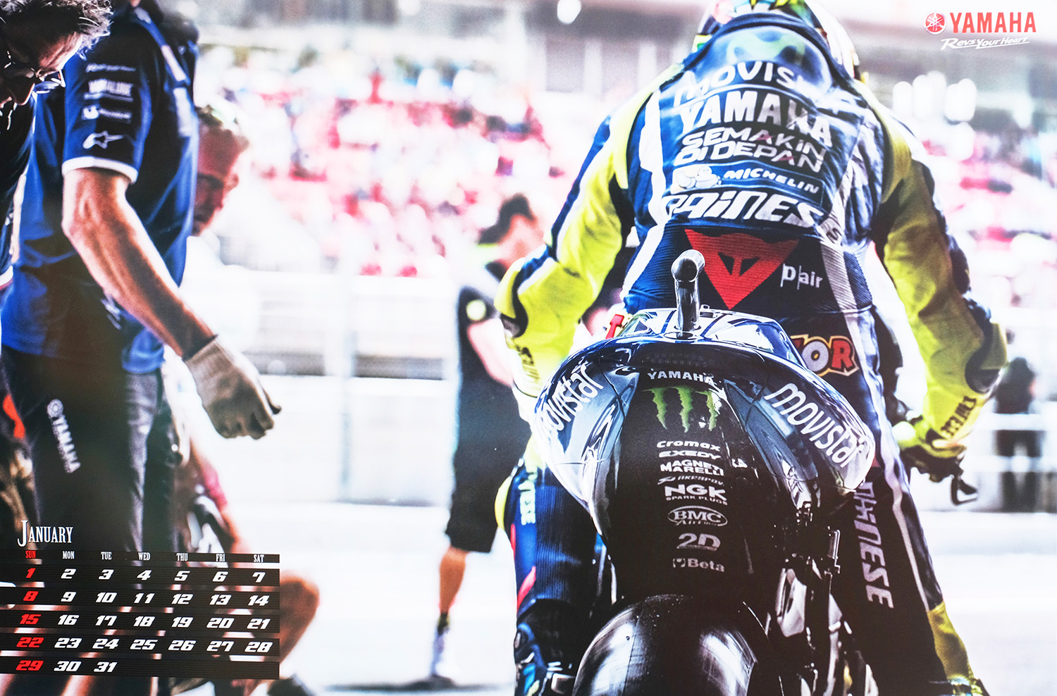 在過不到半個月,我們即將揮別精彩的2016賽季,在進入2017賽季之前,SUPERMOTO8也精美的小禮物要送給各位,由日本官方所印製的2017 YAMAHA賽車月曆,集合了Rossi與Lorenzo等車手的精彩追焦鏡頭,除了月曆的功能,每一張也都是值得珍藏海報。