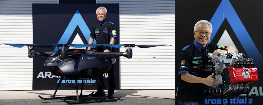 在SUZUKI任職長達35年的荒瀨 國男,過去曾經協助SUZUKI開發GSX-R1000 K5的引擎,隨後更擔任HAYABUSA的引擎開發總工程師,以及MotoGP廠車的技術經理,在他離開SUZUKI之後,合夥創立了ARASE AIZAWA公司,進行無人機的開發。