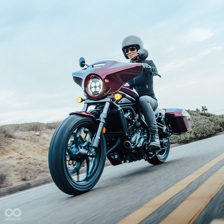 但最有感的改動應該是車尾直接安裝了兩咖硬殼馬鞍箱,總共有35L的容量絕對可以對應車主長途旅遊的需求,車頭車尾配件加入後,也讓HONDA REBEL 1100T呈現出有如哈雷鯊魚頭頂級車款的霸氣感受,但除了外觀改動外,1100T其餘規格皆與現行REBEL 1100相同,唯獨REBEL 1100T單一採用DCT變速箱配置,並無傳統手排版本。