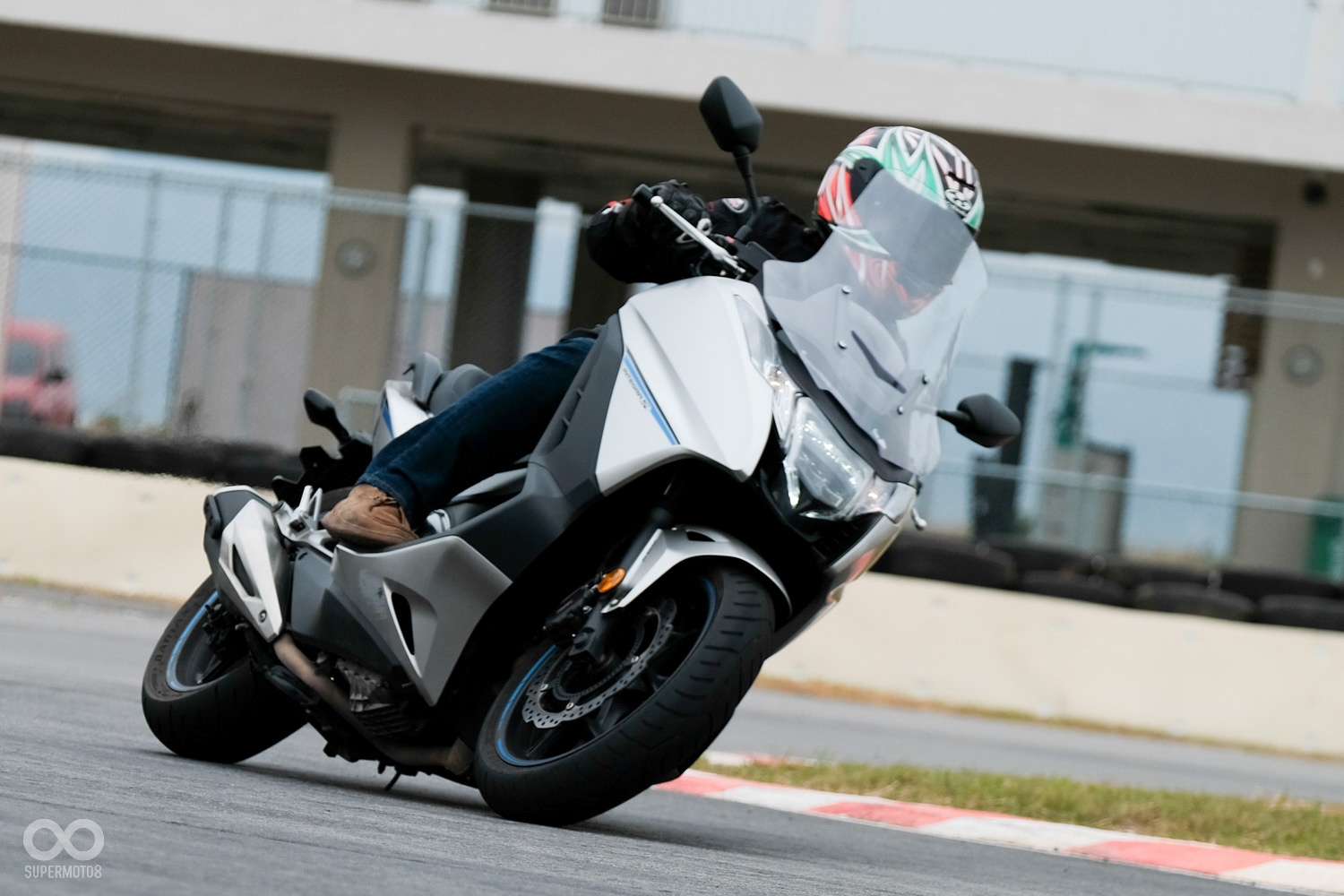 最後試騎的則是速克達車型的NC750D INTEGRA,起初認為速克達車型的運動性理當不如檔車,但在實際騎乘後便會發現其實不然,INTEGRA雖然是速克達的型,骨子裡終究檔車,加上兩側底殼設計的巧妙,傾角深的異常,雖然軸距比其他兩款車型長,但重心較高,反而成了三台車中最靈活的車款,面對卡丁車賽場刁鑽的連續彎道處理起來輕鬆愜意。