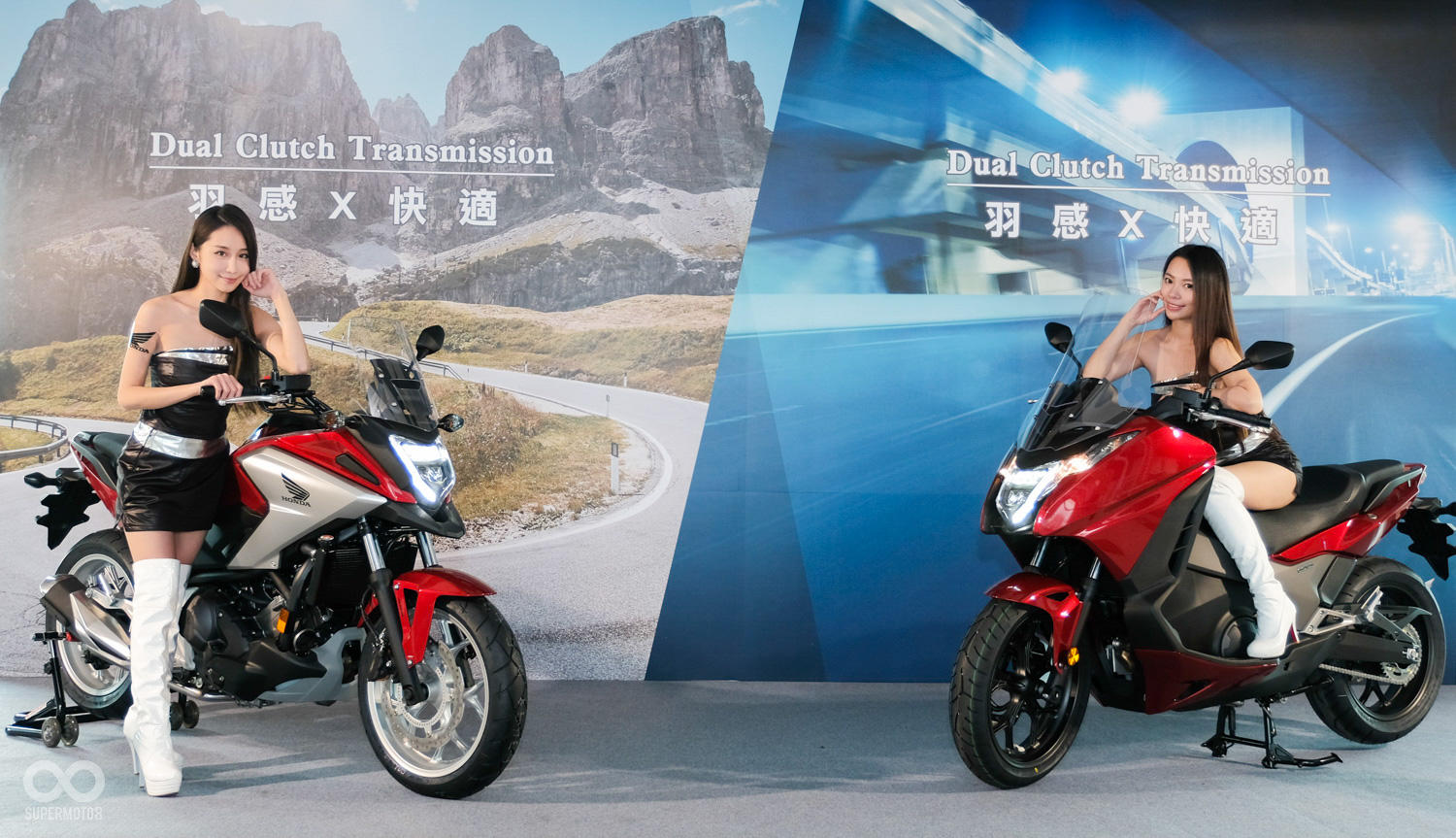 2017 HONDA將在現有的四款車型中,推出五款新配色,其中NC750D INTEGRA的新色實車也送到了現場展示,與現有的白色以及金屬灰配色相比,帶有珠光的紅色烤漆顯得更為年輕、動感,頭燈使用LED燈具兩旁襯上定位燈十分大器,搭配上高科技的DCT雙離合器變速系統,能文能武動靜皆宜。