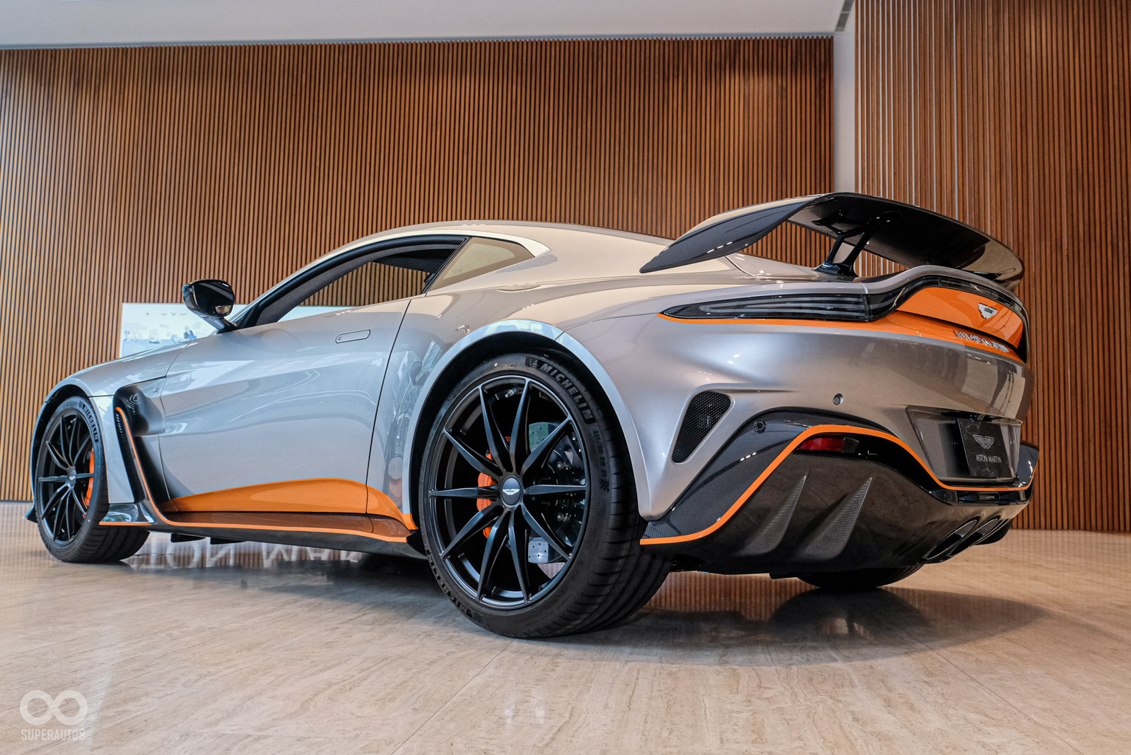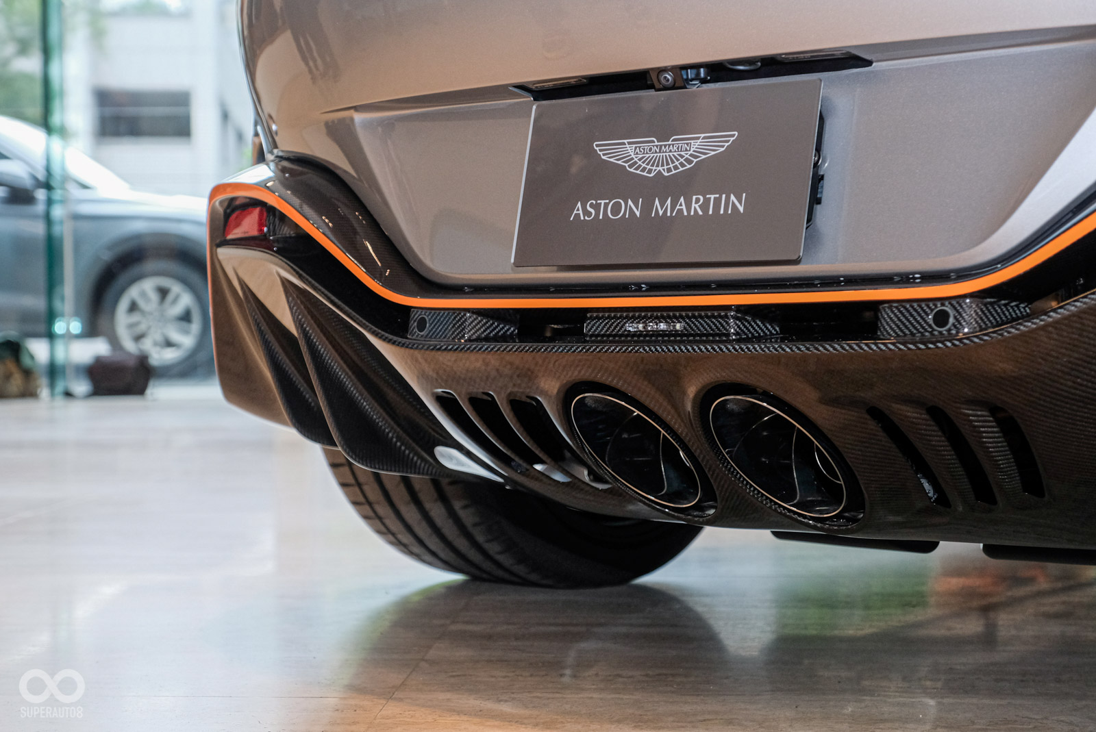 車尾採用全新後保桿與分流器設計,保持空氣力學的完美平衡。新設計的核心主角來自輕量化的雙尾管排氣系統;身為視覺焦點的尾翼設計,可提供高速行駛下 204KG的最大下壓力,並讓整體外觀更顯張狂有力,完美發揮V12 Vantage優異空氣力學所提供的高速穩定性與終極性能。