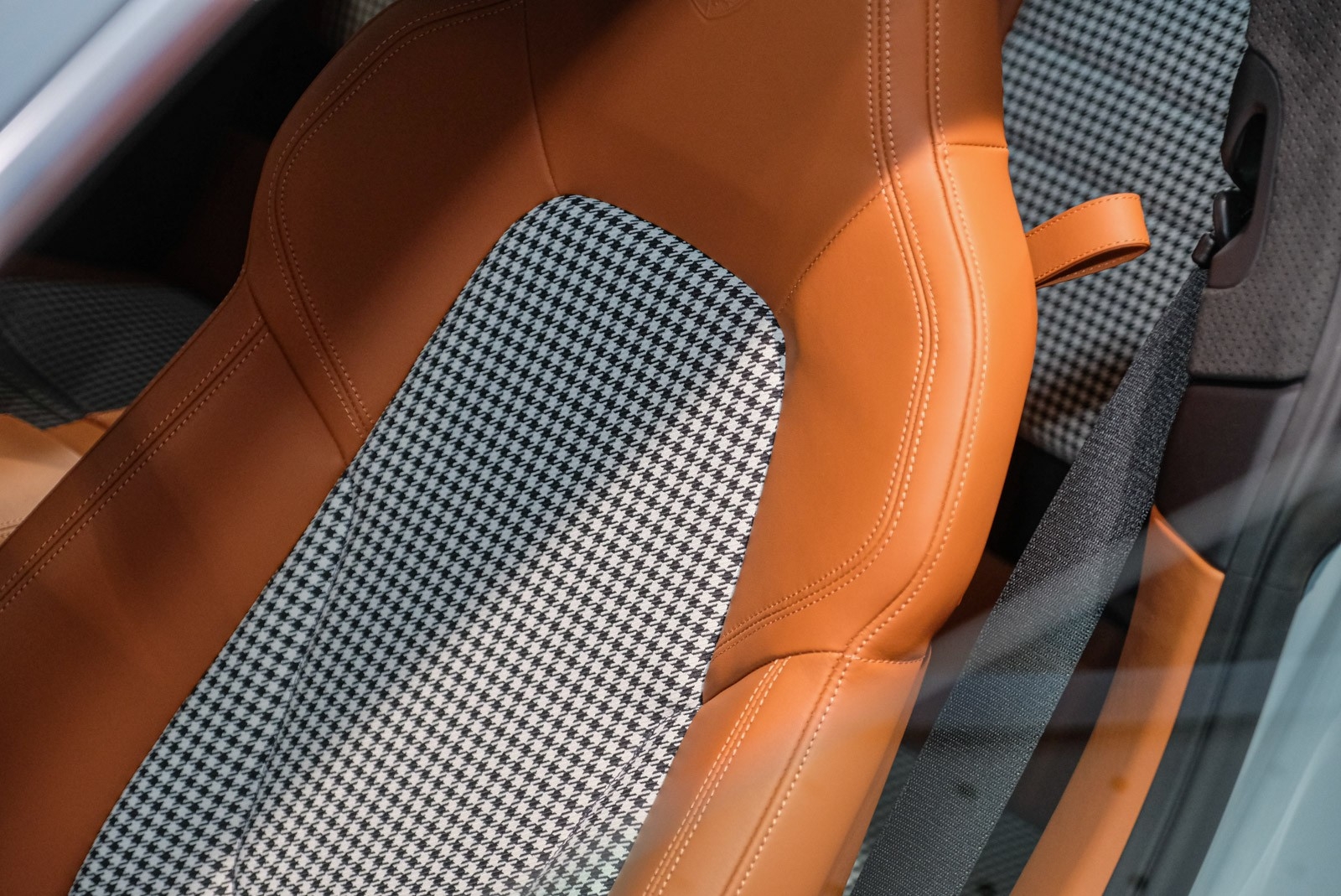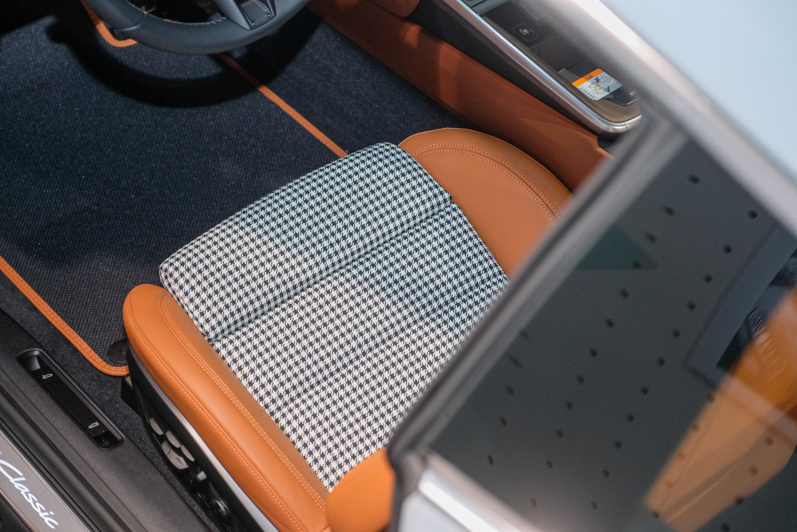 進入車室之內,經典的千鳥格紋妝點在座椅中央以及車門飾板,而黑色/經典干邑棕色的雙色頂級皮革內裝,與車身顏色形成優雅的對比。