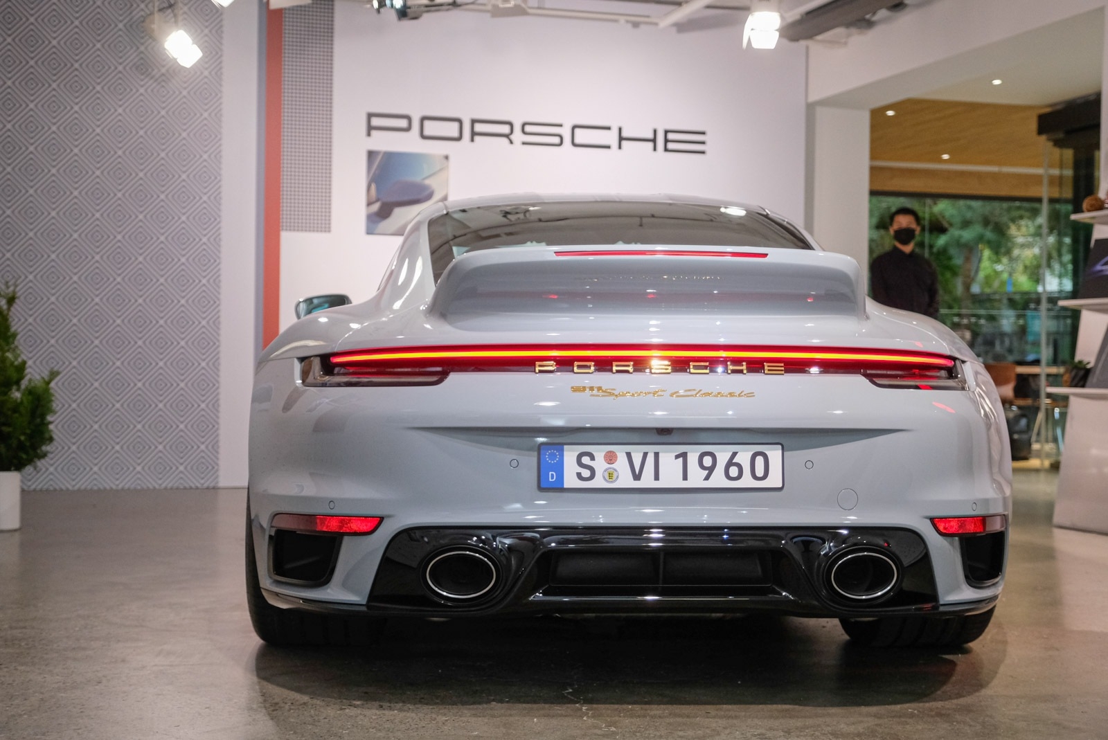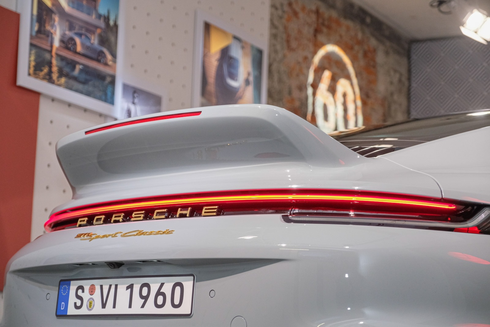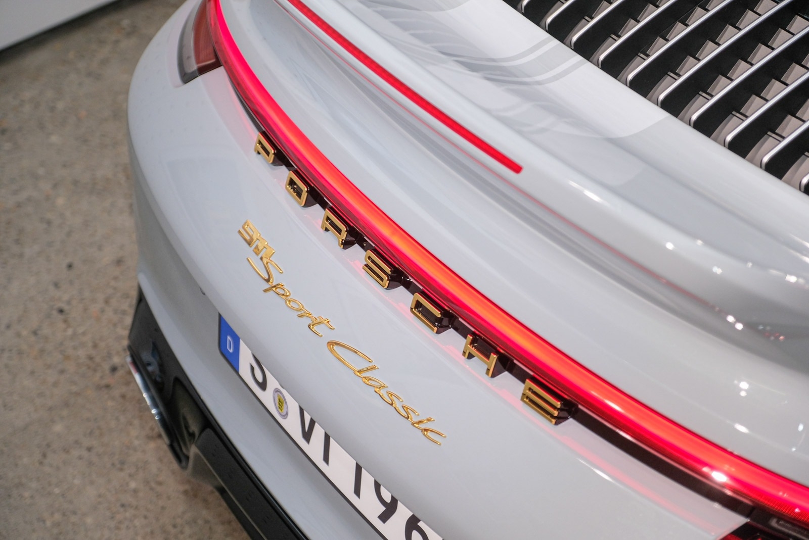 包含專屬於 911 Turbo 車型的寬體車身;向傳奇車款 Carrera RS 2.7 致敬的固定式碳纖鴨尾尾翼,並施以車身同色烤漆,以及雙拱式車頂皆凸顯了全新 911 Sport Classic 的獨特性。