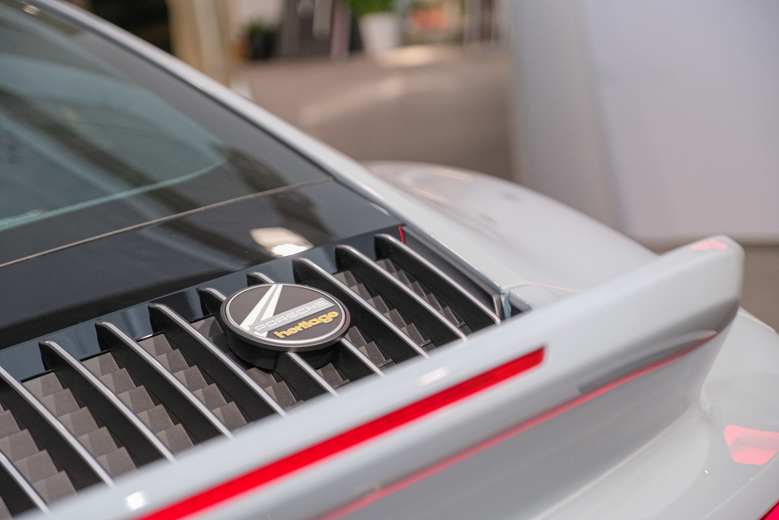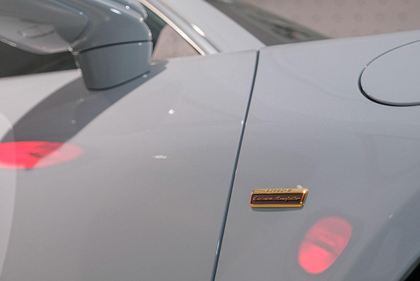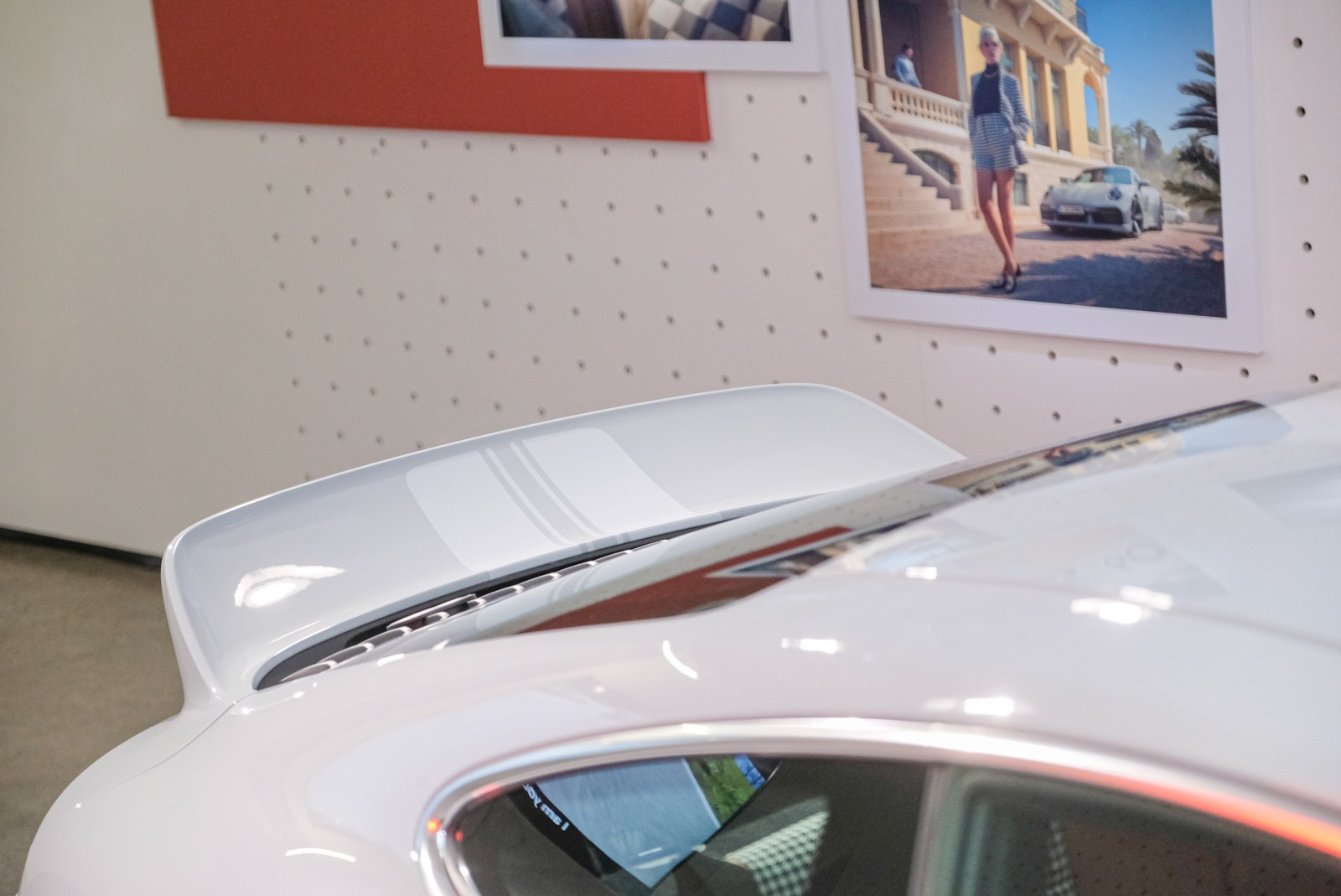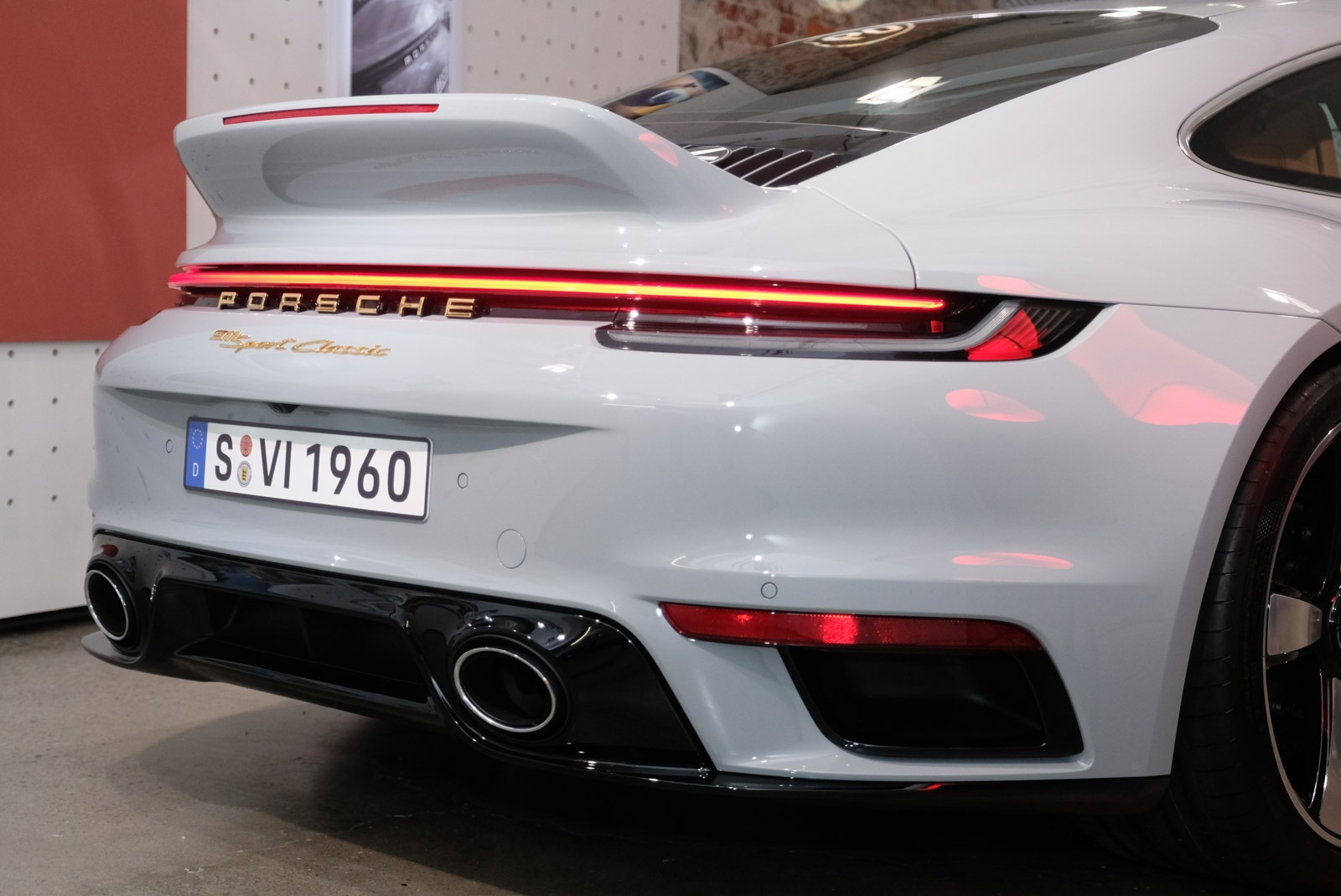 包含專屬於 911 Turbo 車型的寬體車身;向傳奇車款 Carrera RS 2.7 致敬的固定式碳纖鴨尾尾翼,並施以車身同色烤漆,以及雙拱式車頂皆凸顯了全新 911 Sport Classic 的獨特性。