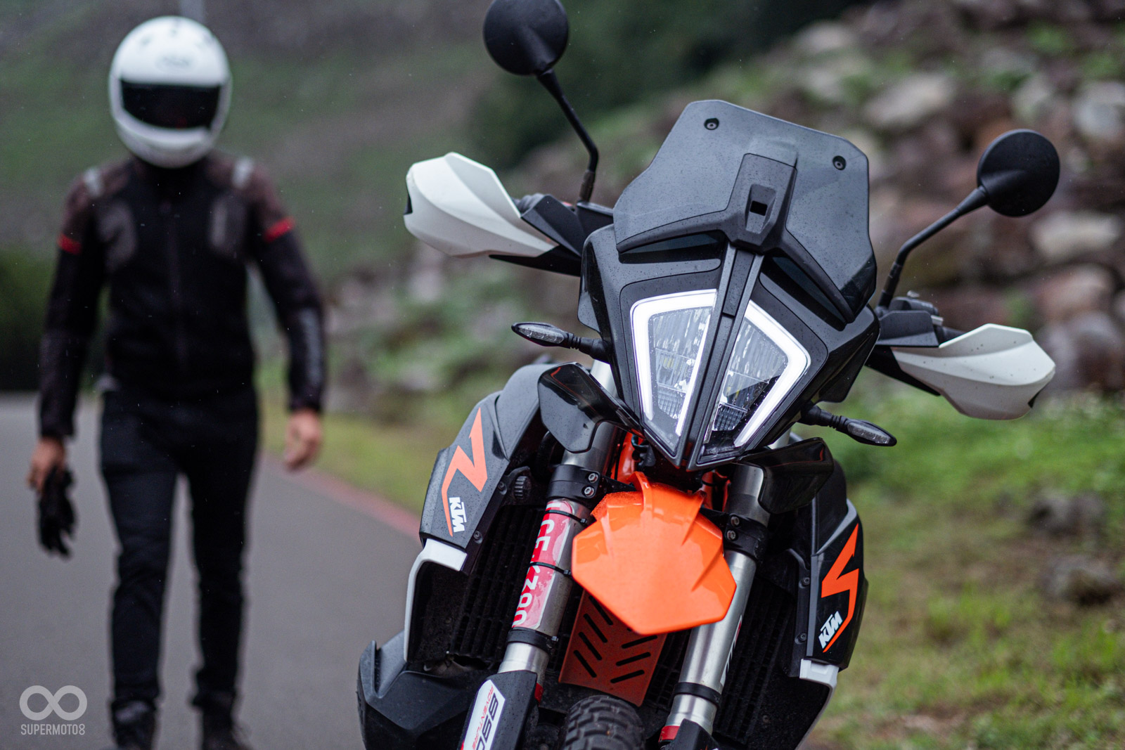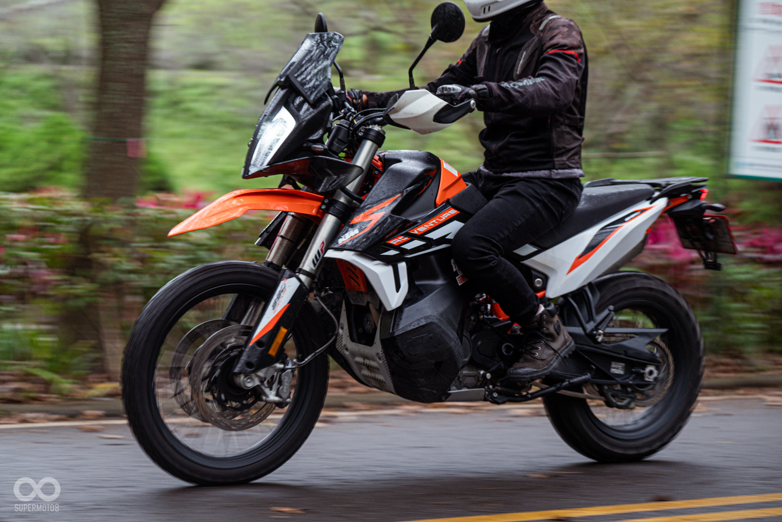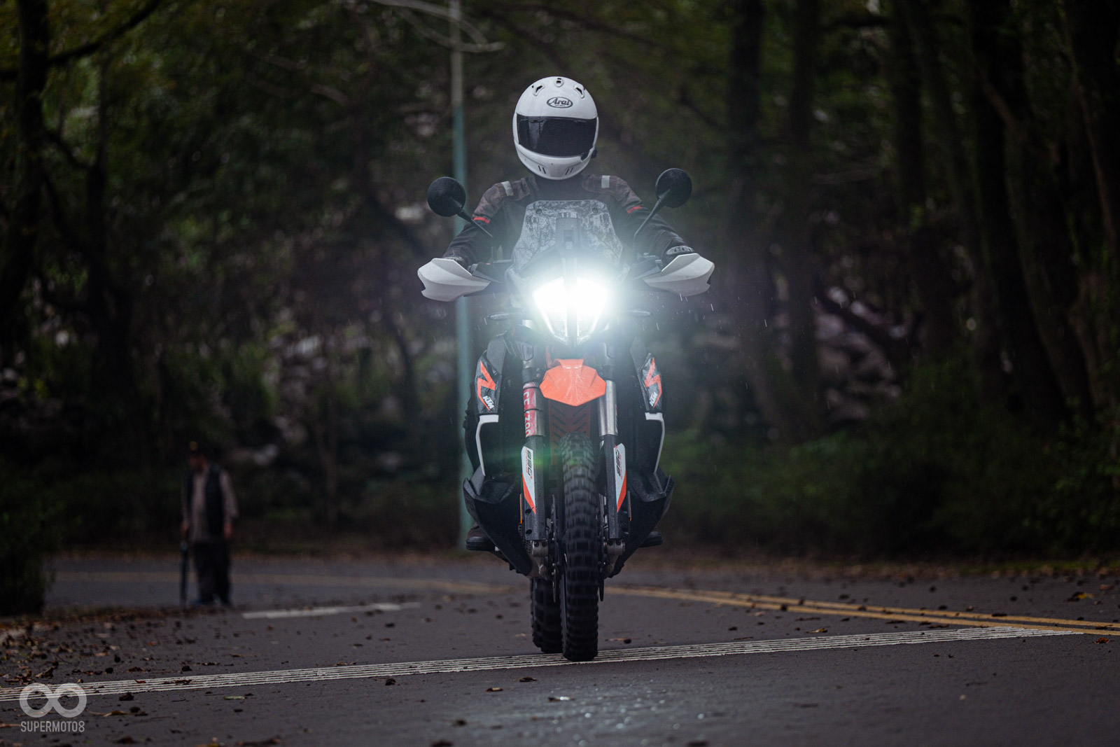 但相對可惜的是本次拍攝期間,剛好遇到北台灣的連日雨天,不過潮濕的柏油依舊抵擋不了KTM猛爆的雙缸動力,道路上騎乘,你可以輕鬆地釋放KTM 890 ADVENTURE R那隨傳隨有的100Nm扭力,即便這台車撘載前21後19的越野取向的巧克力胎,但面對都會與高架道路直線為主的移動狀態,依舊會讓車主笑容滿面。