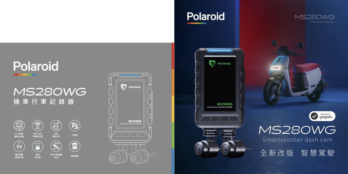 擁有85年歷史,全球知名影像品牌Polaroid寶麗萊,近年在台推出多款摩托車行車紀錄器暢銷產品,廣受消費者指名與喜愛,今年上市一款全新產品專屬台灣電動機車龍頭大廠 Gogoro 車系通用機種 MS280WG,經過 Gogoro 與聯鎧電子Netconn攜手開發測試,將在 Gogoro 官方通路開賣。透過寶麗萊的專業相機光學調校,展現美國影像大廠品質,提供高品質的行車記錄器畫面,深受各界好評,並獲得許多車主青睞,網友讚譽有加。MS280WG 規格與功能守護每一位 Gogoro 機車騎士的行車安全和影像樂趣!