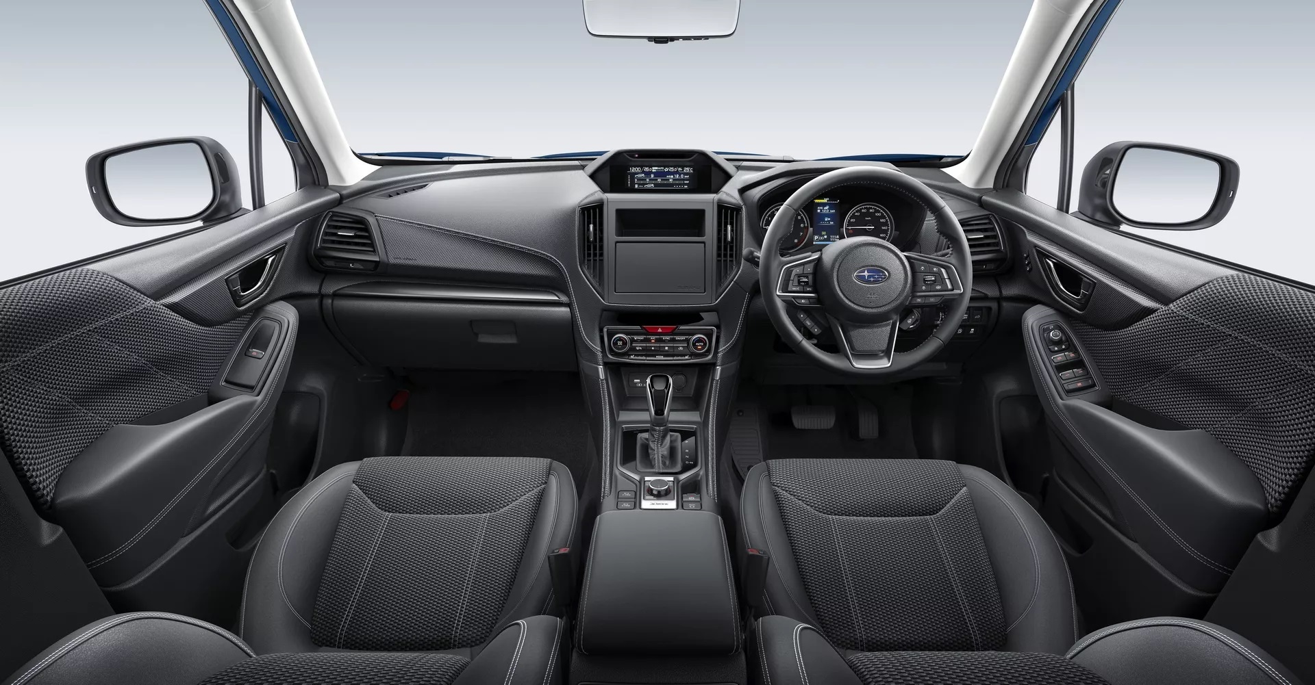 奇怪的是在中控台上,XT版本沒有配備娛樂資訊幕,只用了黑色素料蓋合一個小儲物空間取代高階車型上會有的中央觸控顯示幕。雖然少了娛樂資訊幕,車內標準配備添加EyeSight Safety Plus ADAS功能與數位車內後視鏡。