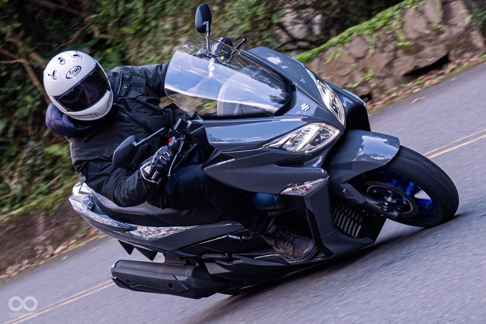 特別是SUZUKI BURGMAN 400 ABS樸實的外型,很容易讓人覺得這就是一台純通勤、不適合熱血騎乘的大羊,但實際帶著這台BURGMAN 400 ABS來了一趟陽金、北海岸一日行之後,我確實對他大幅改觀,雖然不是真的能多熱血、戰鬥,但BURGMAN 400 ABS在山路上是真的能帶來跑山樂趣體驗的,到了路又大又直的北海岸,又能給騎士非常愜意、舒適的巡弋體驗。
