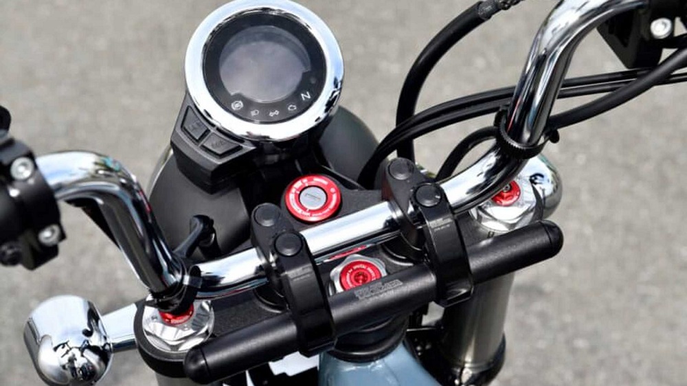 整組套件並不是單獨由Special Parts Takegawa打造而成,整輛車上有不少配件是由另一間知名改裝部品廠商Kitaco打造而成。不過整個套件最亮眼的部分,無非是他的排氣管改成了一組雙出的排氣管來延伸Dax 125的車身長度,排氣管外則是再用上了鍍鉻的防燙蓋來增添整體的復古風格,保留Dax 125原本的風格。