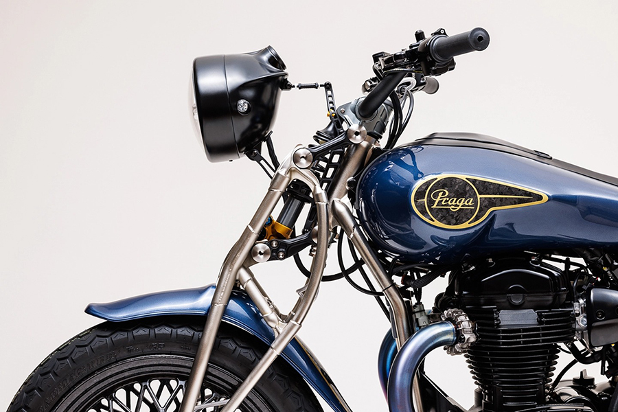 動力部分,Praga ZS 800則是採用源自KAWASAKI W800的773c.c.並列雙缸引擎,這具引擎除了有散熱鰭片帶來的滿滿的老味外,特殊的傘狀齒輪控制凸輪軸的設計,也與當年Praga BD500相同,動力雖僅有47HP,但Praga ZS 800在全車頂極材料的打造下僅有158公斤濕重,動態表現應該相當不錯。