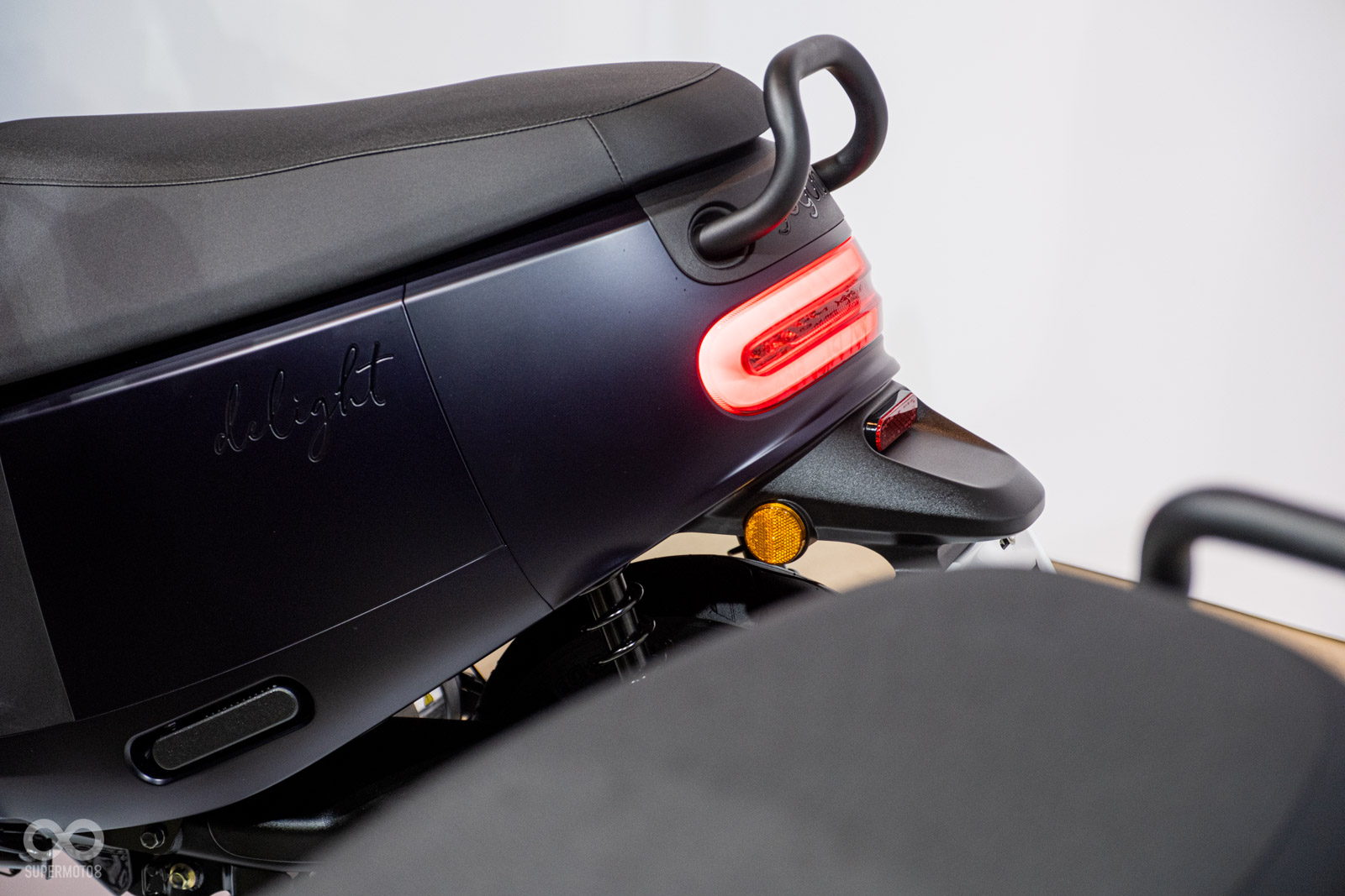 此外,Gogoro Delight 「本色黑」也搭載亮黑後照鏡、燻黑尾燈與方向燈、鋁合金輪圈、後扶手及飛旋踏板等本色黑套件貫徹出的純黑美學之下,也同步標配TCS系統,讓你除了可以擁有原廠黑化外,也同步提升騎乘安全性。