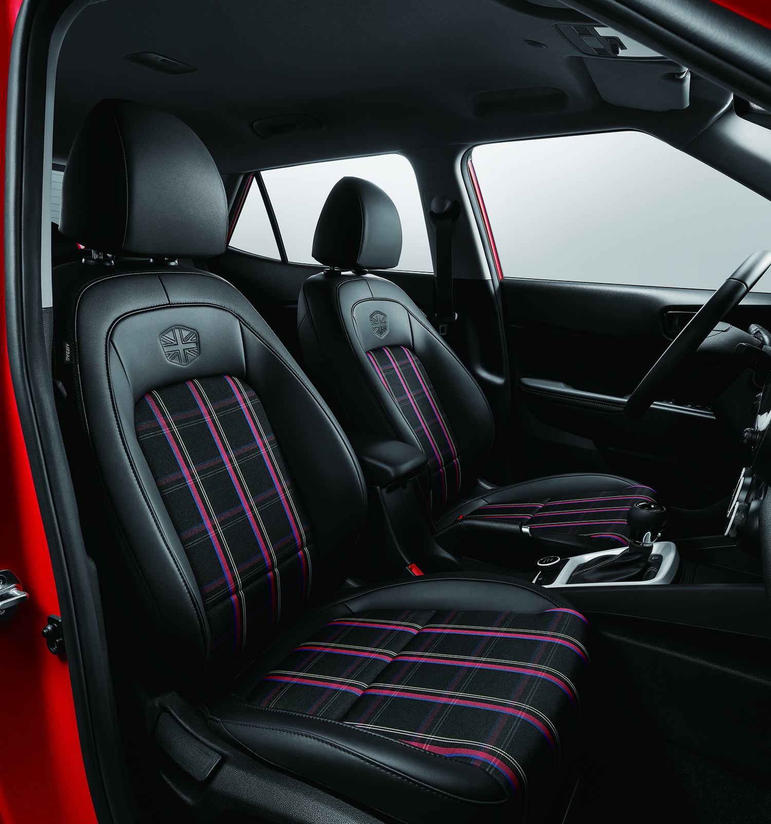 VENUE英倫版「倫敦紅」全新穿搭外觀採用經典紅色,細節處搭配白色Two-tone車頂、後視鏡,畫龍點睛的白飾門把,黑色切削雙色鋁圈,再繫上專屬英倫飾徽,帶有個性與優雅的設計就是潮流時尚魅力。既是英倫風,內在當然不可缺少迷人風情,雙前座椅專屬蘇格蘭紋及熱壓LOGO飾徽,現在入手,每一趟外出都猶如徜徉在英國街道。