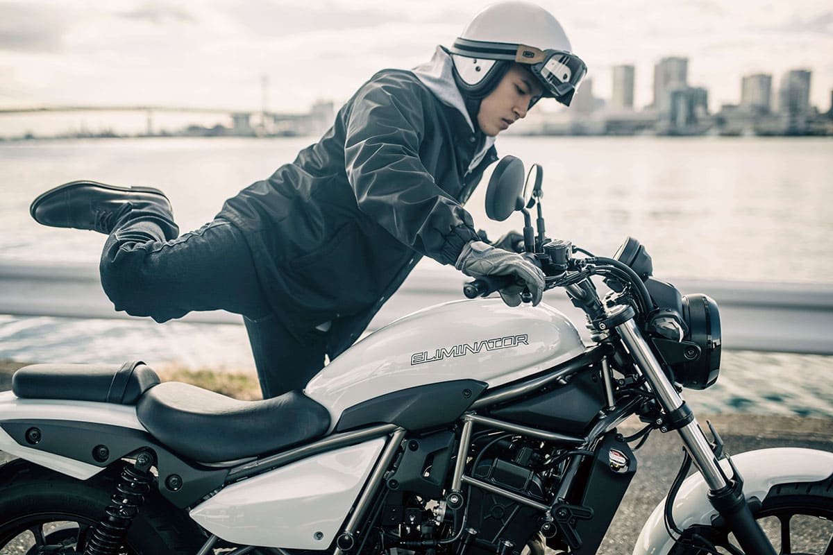動力方面,Eliminator搭載和NINJA400相同的398c.c.並列雙缸引擎,擁有48PS @ 10,000PRM的最大馬力和3.8KG-M @ 8,000RPM的最大扭力;車重176公斤、座高735MM;前懸吊使用41MM正叉配雙槍後避震,前剎車為310MM碟盤配雙活塞卡鉗,後剎車為240MM碟盤配雙活塞卡鉗,前後皆具備ABS。