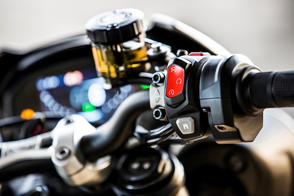 電控已然成為當今車輛的發展方向,Triumph也將最新的電控配備植入Street Triple 765 RS,利用RBW電傳線控節氣門技術,使油門細膩度大幅提昇 ; ECU能依照不同的駕駛模式整合全車各項電子系統。具備五種可調動力模式選擇,具有街道、雨天、運動、賽道模式以及騎士編程,當中的賽道模式能將馬力全部輸出,且把電控干預降低;另外這次除了ABS系統外更增加了TCS(循跡防滑系統)讓騎士在出彎大開油門時也可受到車輛的安全機制保護。進階的騎士編程項目,可依照個人需求進行細節調整,切換或關閉ABS與TCS的介入。