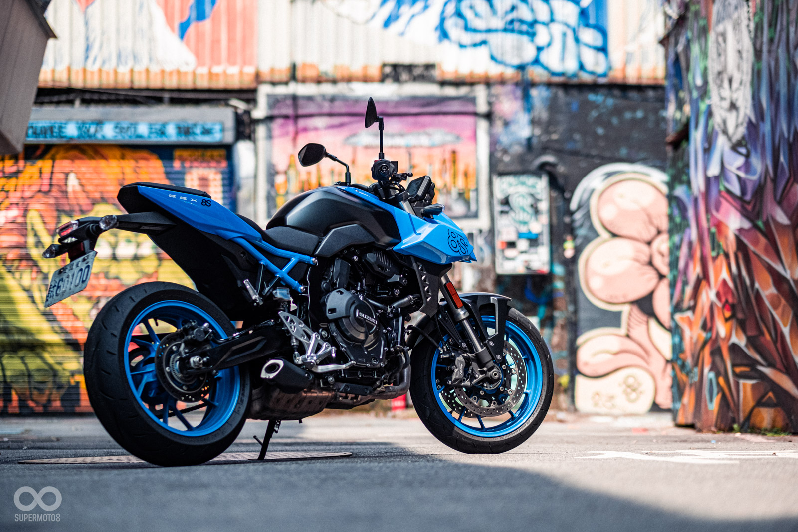 GSX-8S這次的推出,可以說在外型、動力和配備方面都做了大大的進步,首先在外型設計上,GSX-8S一改過去GSX-S750較為圓潤的車身線條風格,改以更有侵略感的線條,讓GSX-8S看起來絲毫不輸歐系的競爭對手,車頭大燈採用源自GSX-S1000的上下陣列式設計,配上有如機器人一般的車頭造型,正面看上去,就好像一個隨時準備戰鬥的鋼彈。