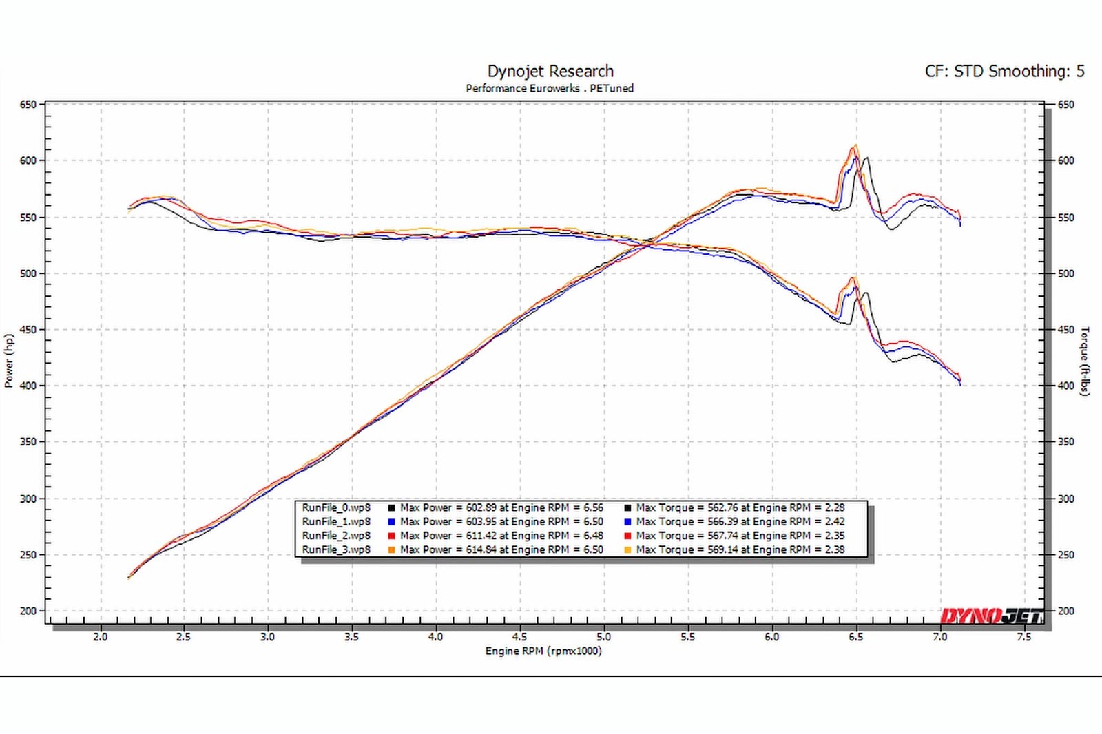 在測試時因為這輛車比較重的關係,因此用了比較多的繩索進行固定,而測試過程出現了一點小小的奇怪狀況,引擎轉速來到6,500rpm的時候,車輛會有一小段動力尖峰突起,測試人員並不曉得這是什麼原因,而紀錄上顯示了輪上最大輸出為614.8hp/78.7kg-m,如果按照過往車輛大約20%的傳遞損耗,代表著這輛車動力單元的輸出就已經擁有768hp/98.4kg-m的驚人表現,根本不用買到Label Red就已經超過750hp了,比官方宣稱的大上115hp。