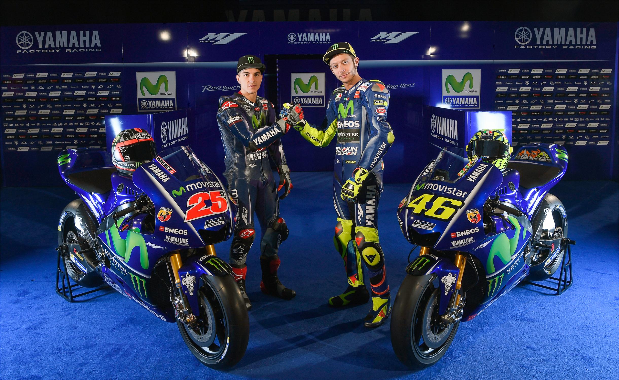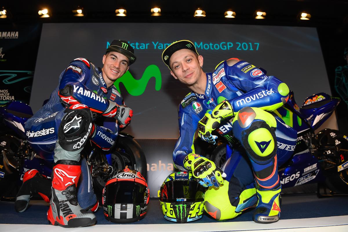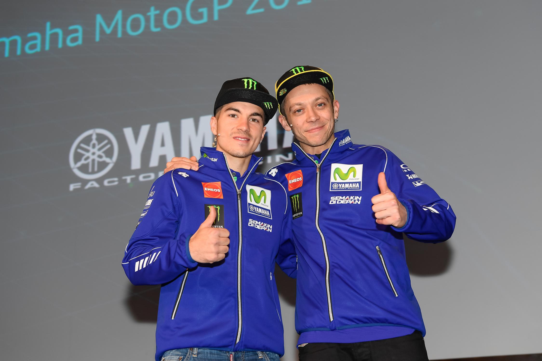 YAMAHA 廠隊車手Valentino Rossi 在廠隊塗裝發表會後與記者進行了專訪,會談中提到他對新款M1 賽車的看法,以及新隊友Maverick Viñales 的加入將會帶來什麼樣的化學作用。他首先否認了將來會與年輕隊友Viñales 產生私人間的競爭,並很有信心地提到M1 賽車有不少改良之處,可以面對新賽季的挑戰。