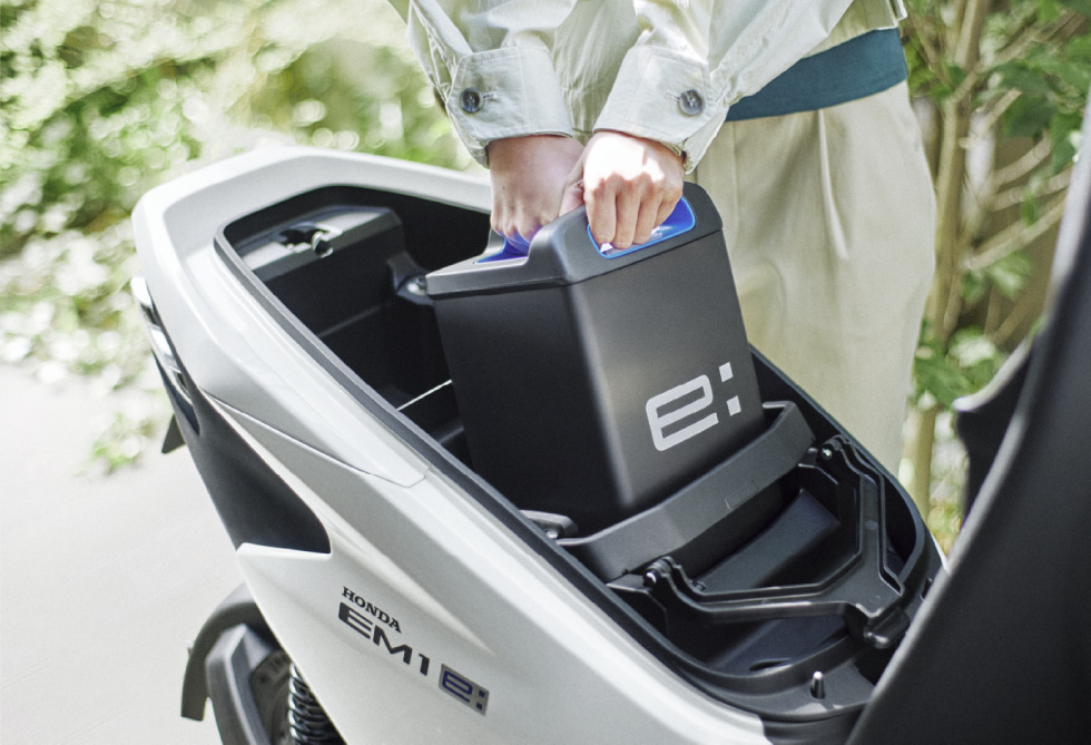 EM1 e:在實用性部分,雖然前方置物空間可以放入500ml水瓶與配有USB充電孔,甚至740mm座高表現與92kg車重也都表現不錯,符合大家對代步車款的期待,但坐墊下的空間因為需容納一顆Mobile Power Pack e:電池,所剩的置物空間看起來連兩截式雨衣都放不下,確實讓人覺得相當扣分。