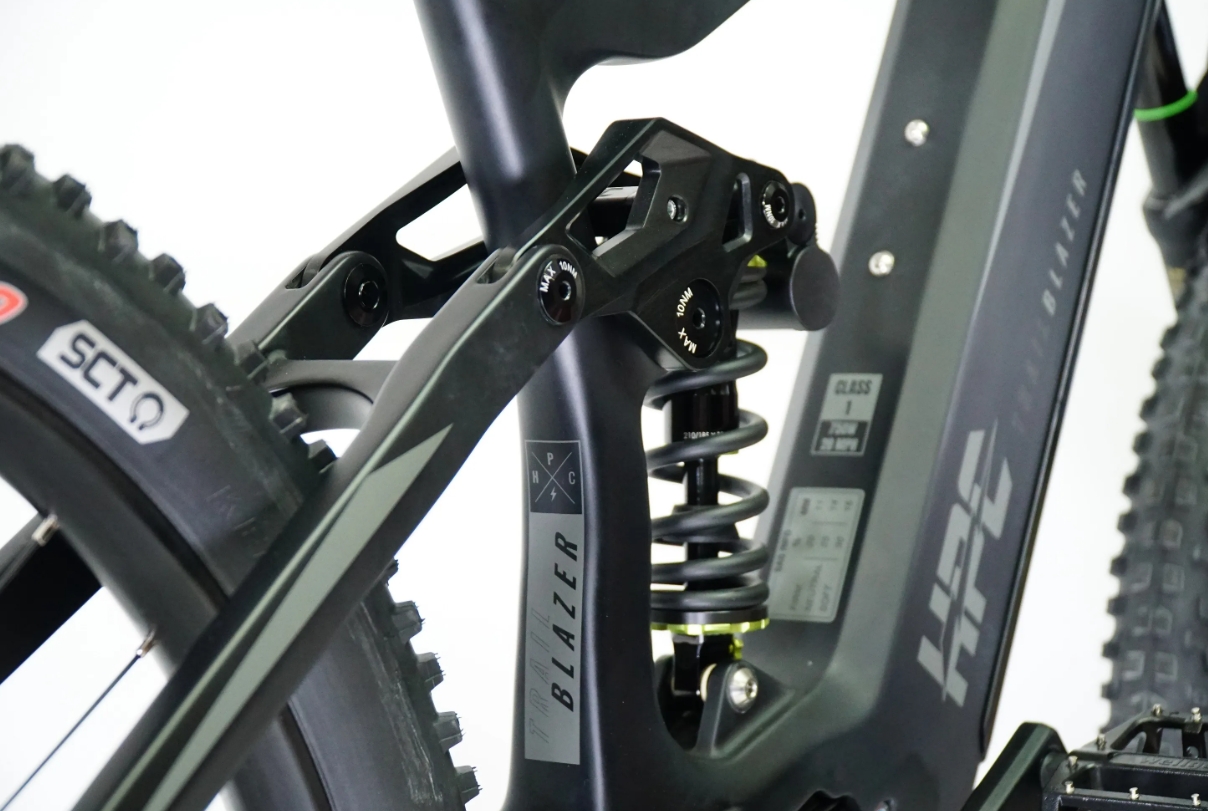HPC Trailblazer的車架是由6061-T6鋁合金製成,具有高強度和低重量的特點。車架還採用了三角形設計,增加了其剛性和穩定性。車架上還安裝了前後避震器,分別是DVO Diamond E2前叉和DVO Opal Air後避震器,能夠有效地吸收路面的震動和衝擊,保護騎士的安全和舒適。車架上還配備了前後碟剎系統,分別是Magura MT4e雙活塞剎車卡鉗,能夠在任何天氣和路面上提供強大的制動力。