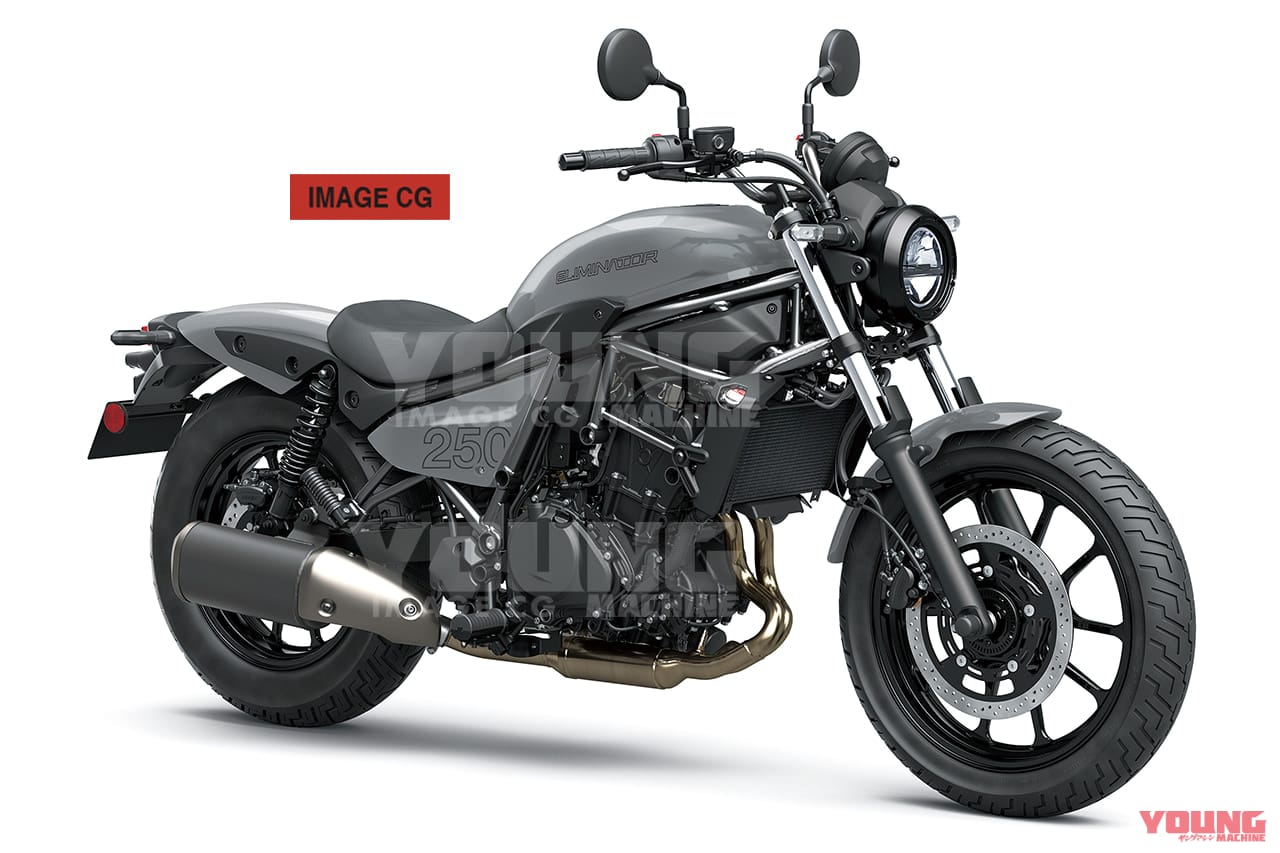 KAWASAKI在2023年無預警帶來以NINJA400引擎打造的美式風格車款ELIMINATOR 400,獨特的美式外型配上源自NINJA車系的運動化引擎,美妙的特性結合讓全球消費者相當期待,不過對於刁鑽的日本媒體來說,ELIMINATOR 400依舊不能滿足他們的好奇心,因此日媒Young Machine特別製作了ELIMINATOR 900/250和ELIMINATOR Bagger的概念圖。