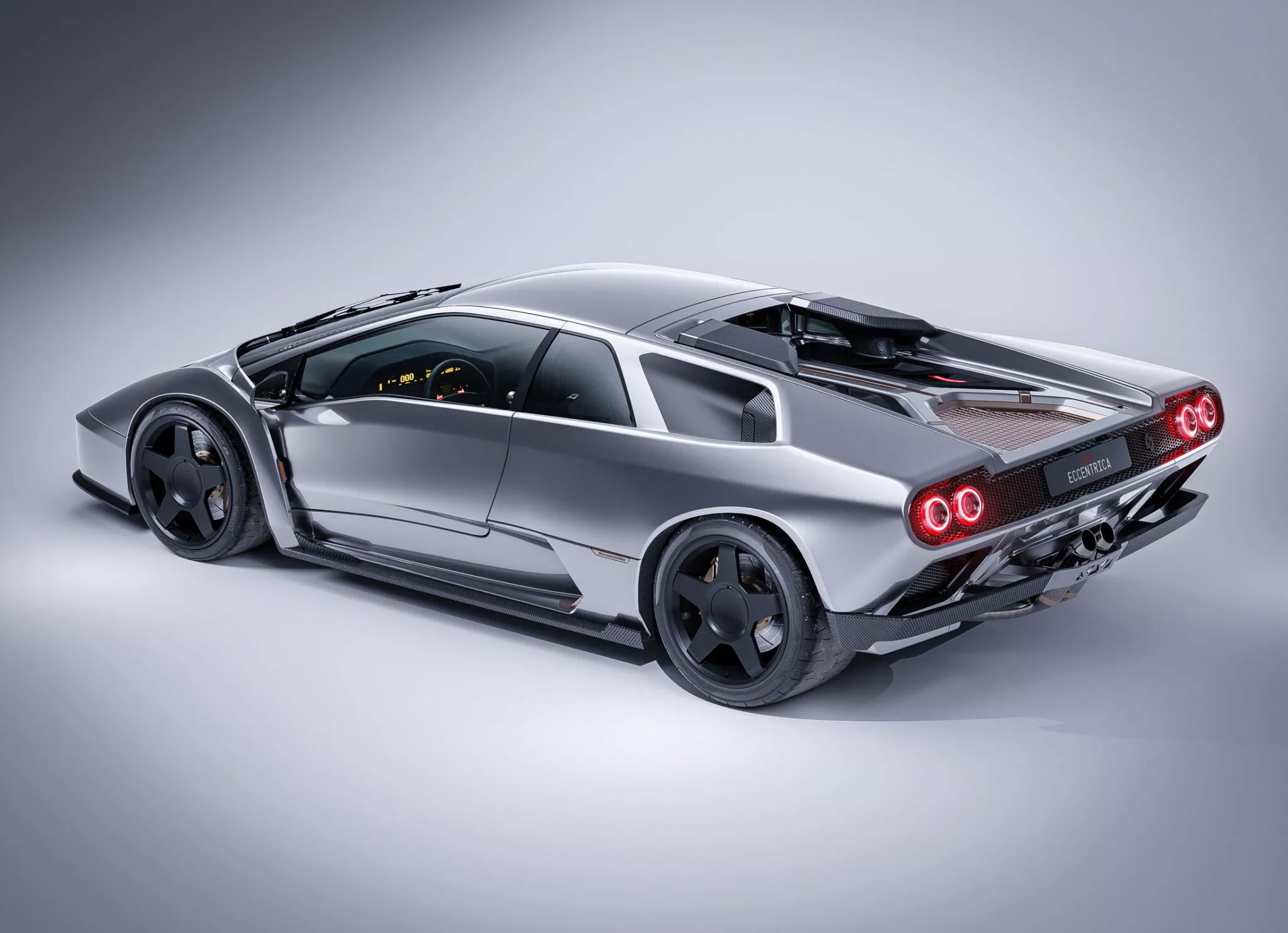 被命名為Diablo Restomod的復刻經典車的靈感來自於賽道版本GTR,車上每個部件都經過修改,使其比原來的更流暢、實用以及重量更輕,其中包括前進氣格柵等細節,在原車型上屬於裝飾用途,但現在有助於改善通過車輛的氣流。透過碳纖維材質和3D打印技術和鈦金屬等材料,有助於提升Diablo車身剛性並減輕重量。此外,最經典的Diablo頭燈也進行了進化,Eccentrica表示這次頭燈並非上掀式,而是下拉式。該公司表示,雖然車輛的尺寸沒有變化,但懸吊行程更短,再加上19吋規格鋁圈,整輛車就相當賽車化。
