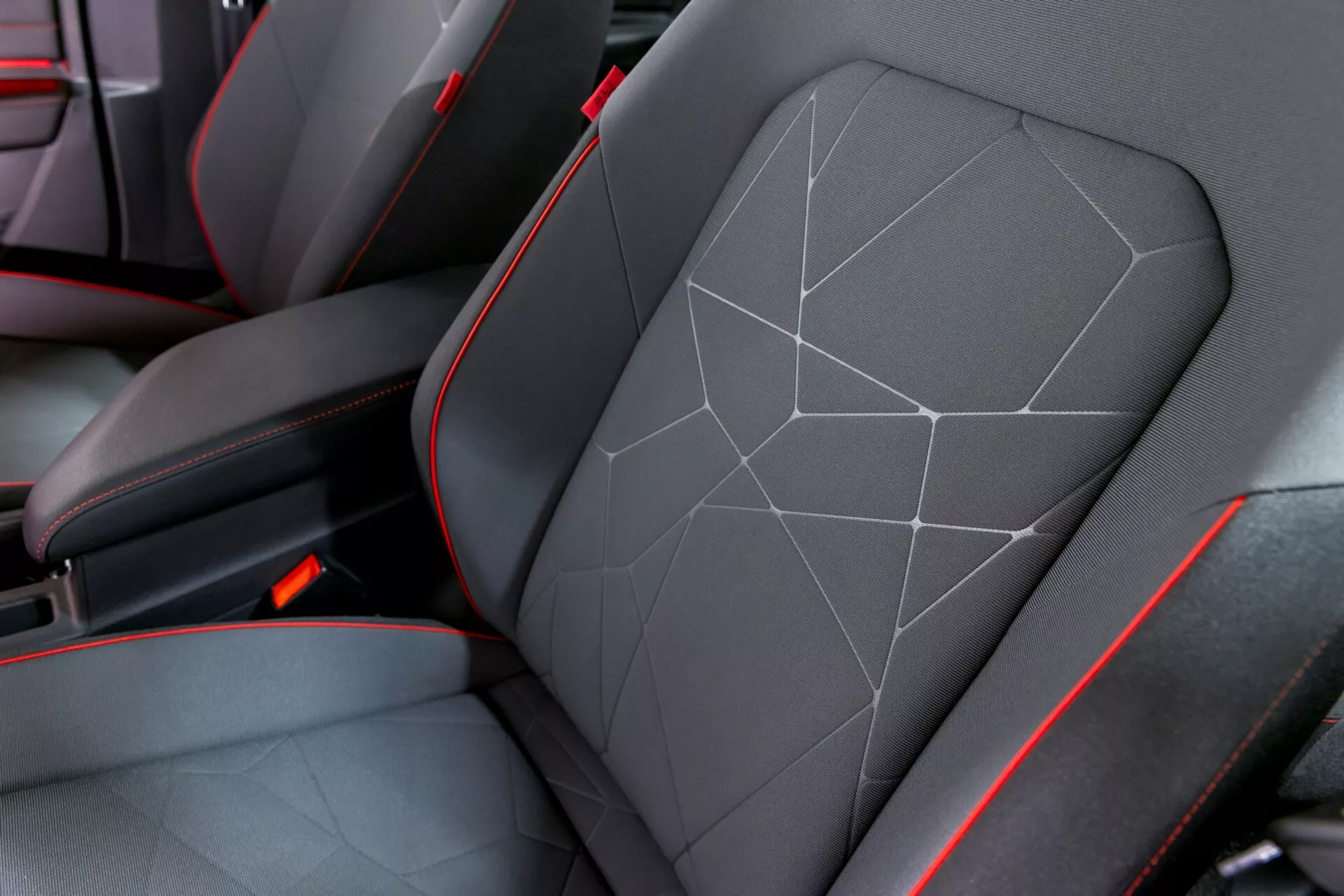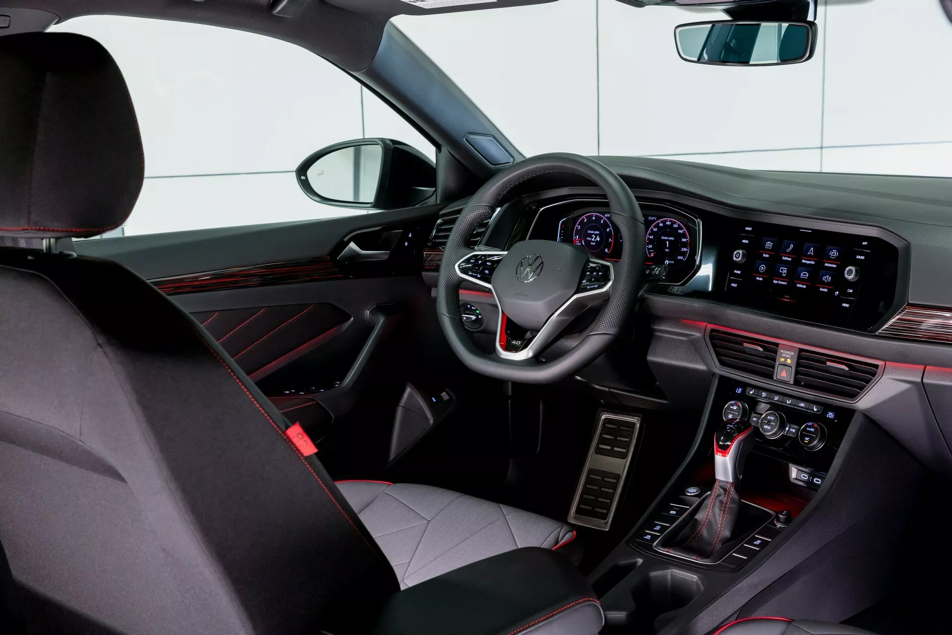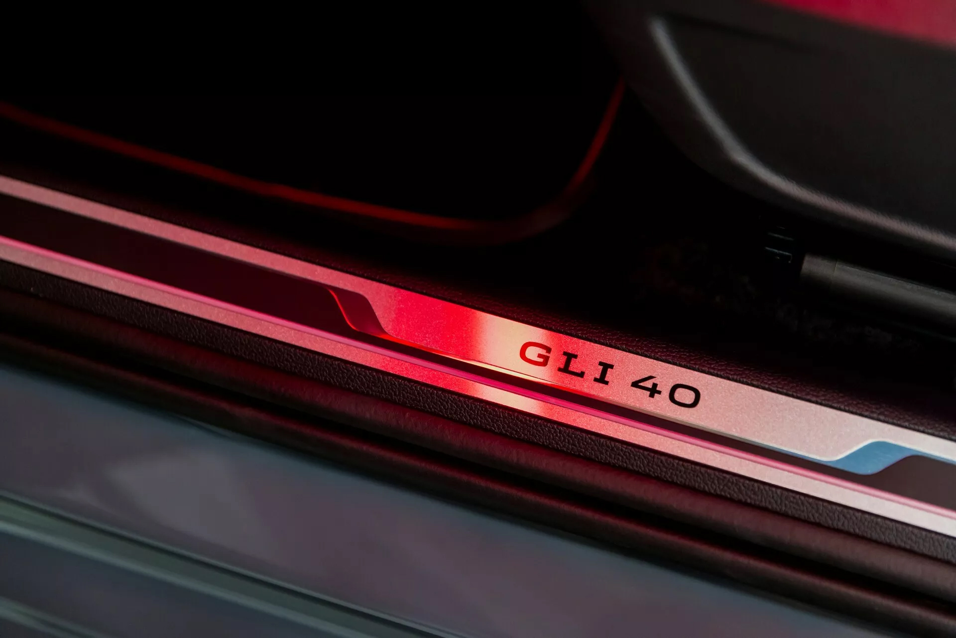 進到車內,可以看到GLI專屬升級,首先就是特殊花紋的座椅布料,該座椅具有紅色對比縫線以及帶有網格狀圖案的獨特背部樣式。背部布面樣式因車輛而異,所以每輛車都不僅相同,可以說是獨一無二的專屬指紋。在其它地方還有GLI與1984年字樣的特殊置杯架,方向盤下方有40字樣,門檻上也能發現GLI 40的專屬訊息。
