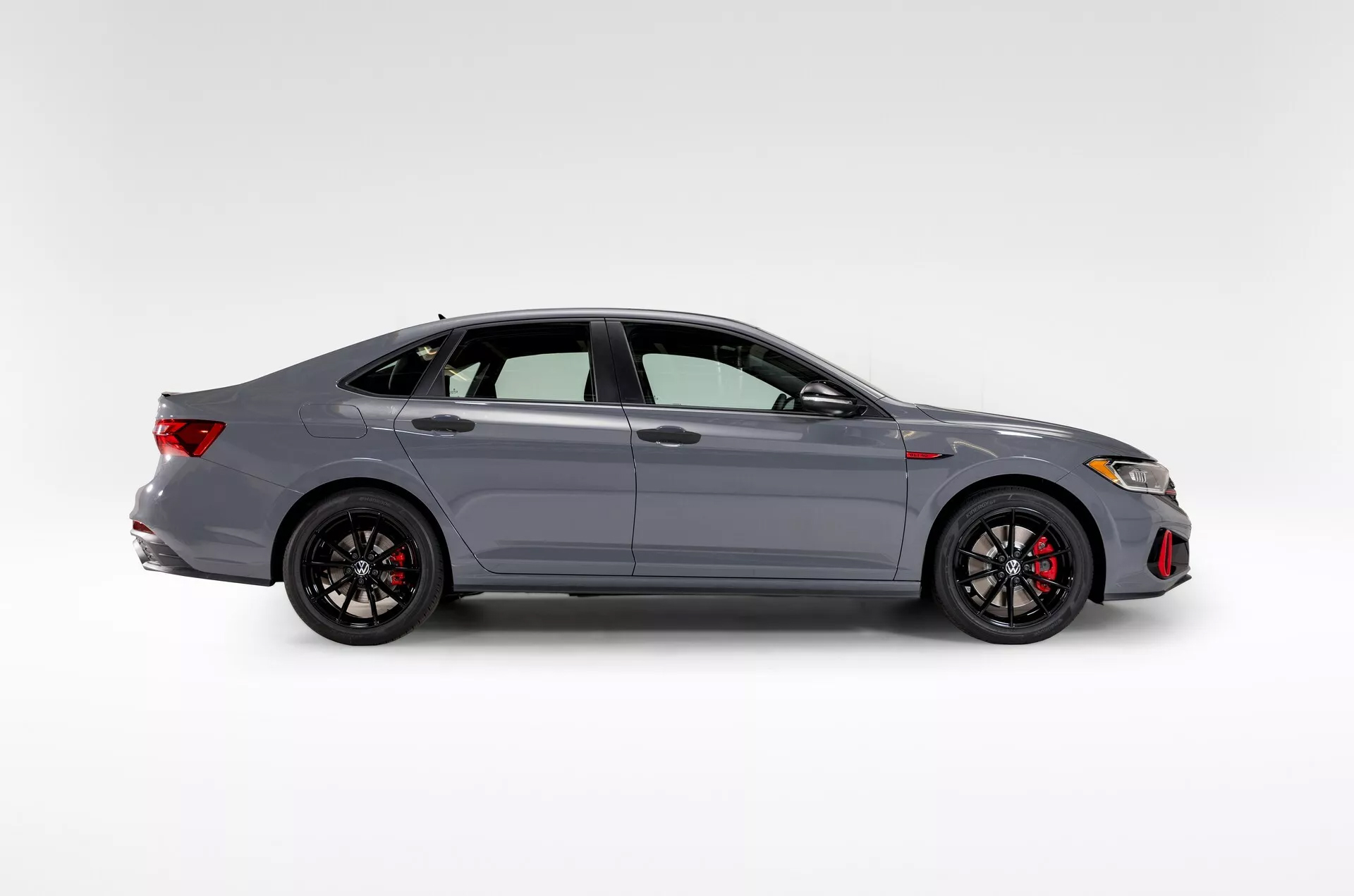 GTI比起GLI早一年進入美國市場,這輛40周年特仕版Jetta GLI採用純白色、純灰色或者純藍色三種單色可以選擇,搭配對比鮮明的黑色後視鏡蓋與車門把手。除此之外,車頭還能看到黑色格柵、黑色擾流板以及黑色18吋規格鋁圈。為了要更加突顯特仕版的特別,水箱罩、進氣壩、專屬銘牌都是使用紅色塗裝。