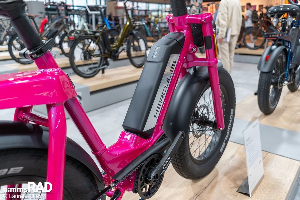 車尾還特地加裝了一個超實用的行李架,你可以輕鬆掛上幾個行李袋,或者一個小籃子,搞定你的日常差事不在話下!而且,車子的輪胎也是厲害,採用了寬胎的Schwalbe Moto-X,能很好地吸收顛簸和坑洞,所以Hercules干脆決定這次不給它裝避震,直接當全地形車用了!
