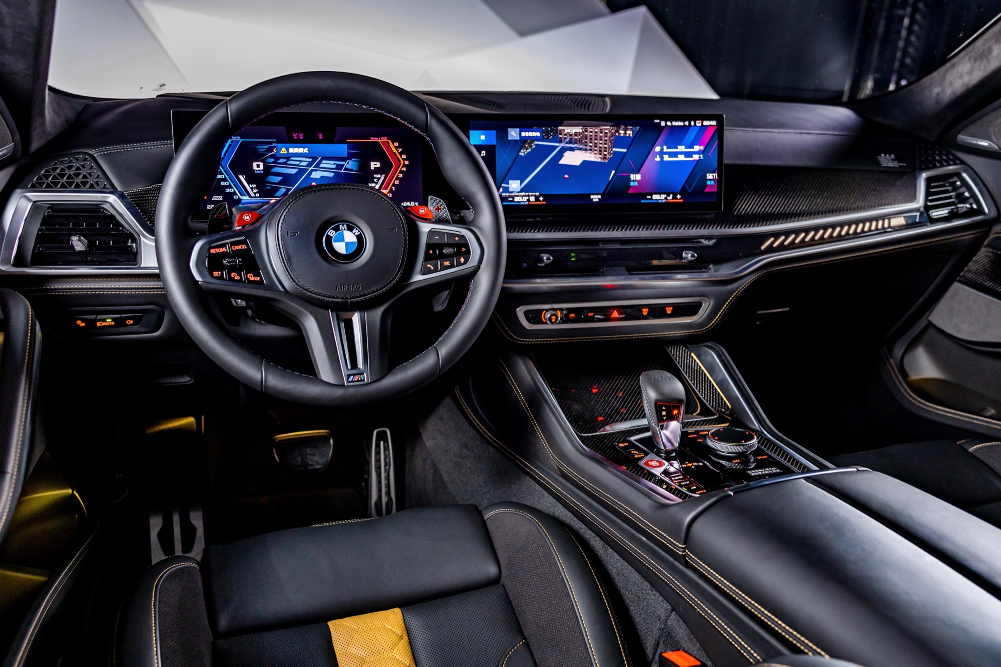 除了熱情與激昂,X6 M Competition座艙更融入了諸多未來科技與豪華細膩鋪陳,如座艙Merino真皮材質、Alcantara麂皮車內頂篷、BMW Individual真皮儀錶檯包覆、懸浮式曲面螢幕(12.3吋虛擬數位儀錶加14.9吋中控觸控螢幕)、BMW Operating System 8.5操作介面、豪華型四區恆溫空調、奈米微粒空調濾網、16具揚聲器的harman / kardon高傳真音響系統、全新世代BMW Personal CoPilot智慧駕駛輔助科技、全新手機遙控停車、自動倒車輔助及記憶路徑停車輔助;此外,更透過M雙前座跑車座椅搭配專屬發光字樣、M縫線安全帶、M多功能真皮方向盤搭配專屬縫線與碳纖維換檔撥片、M碳纖維飾板、M專屬排檔桿、M專屬儀錶與M車況抬頭顯示器增添專屬於M的強勁性能氣息,戰鬥氛圍從進入X6 M Competition座艙即刻湧現,瞬間點燃征服慾望!