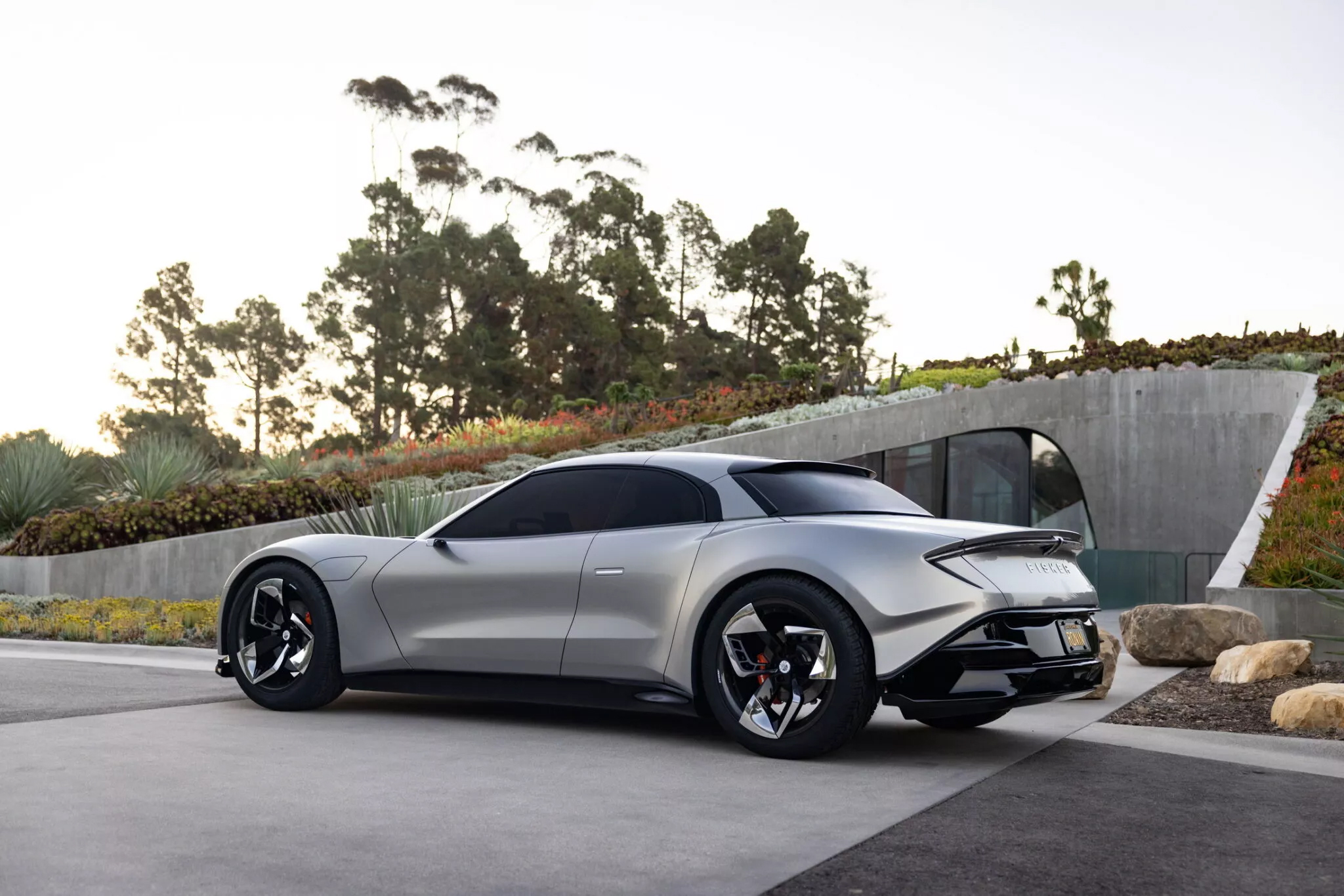 Fisker發布了一系列的照片,從更多角度展示這輛跳脫框架的GT敞篷跑車。車頂採用折疊式向後收折,造型與作動機構讓人聯想到法拉利Roma Spider,只是車身長度更長、具備四個車門。當車輛關閉頂蓬,看上去像是一輛轎跑車的樣貌,散發類似Mazda RX-8的氣息,但整體姿態更具異域風情。除了敞篷結構、車身樣貌造型特殊外,鋁圈的造型也很有味道,並使用碳纖維製成,尺寸為23吋規格。