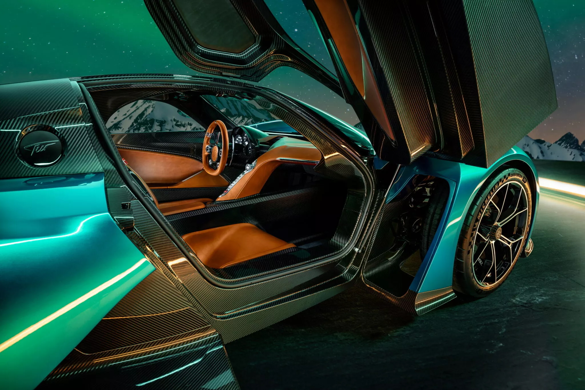 另一款Aurora Tur則專注於道路行駛而非賽道,外觀看上去沒有誇張空力套件,但其實也並非平庸,它搭載兩顆電動馬達使其最高速度比Aurora Agil還高。兩顆電動馬達為前輪提供動力,實現了出色的過彎性能。總體而言,動力系統提供高達1,850匹最大馬力。不過額外的動力也增加了車身重量,這使得Aurora Tur 的重量達到1,450公斤。加速表現上,2.3秒能完成0-100公里/小時加速,最高速度則能達到誇張的450公里/小時。