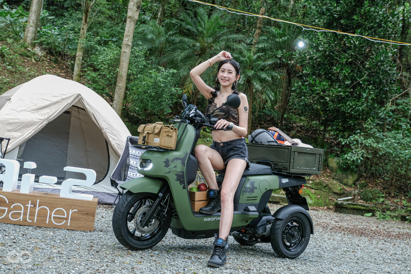 Ai-2 Gather曠野綠特仕版,最顯眼的改變於外觀使用墨綠色混搭迷彩風格的呈現,並加上專屬車貼彩繪彰顯冒險粗獷性格,而獨特的三輪配置多元用途也為騎乘者帶來更大的安心與信心。