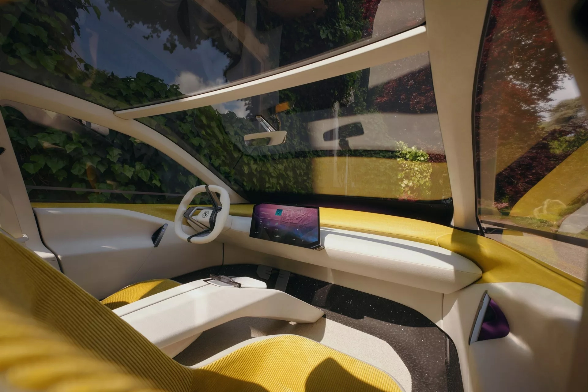 Vision Neue Klasse有三項顯著的改變,那就是沒有按鍵、鍍鉻和皮革。BMW用繩線織物取代真皮座椅,座椅本身透過特殊支架直接安裝於車身結構上,這樣的設計可以好好利用空間,帶來更寬敞的車室。駕駛者與車輛互動是透過BMW Panoramic Vision合中央螢幕進行,唯一有按鍵的地方就屬方向盤,助於駕駛者切換導航顯示幕,大家熟悉的iDrive已被淘汰。Panoramic Vision是一套進階的娛樂系統,可以完美匹配駕駛者的高度將訊息投射在擋風玻璃上;車輛在行進過程,BMW 3D Head-Up Display能顯示駕駛資訊、導航訊息等。
