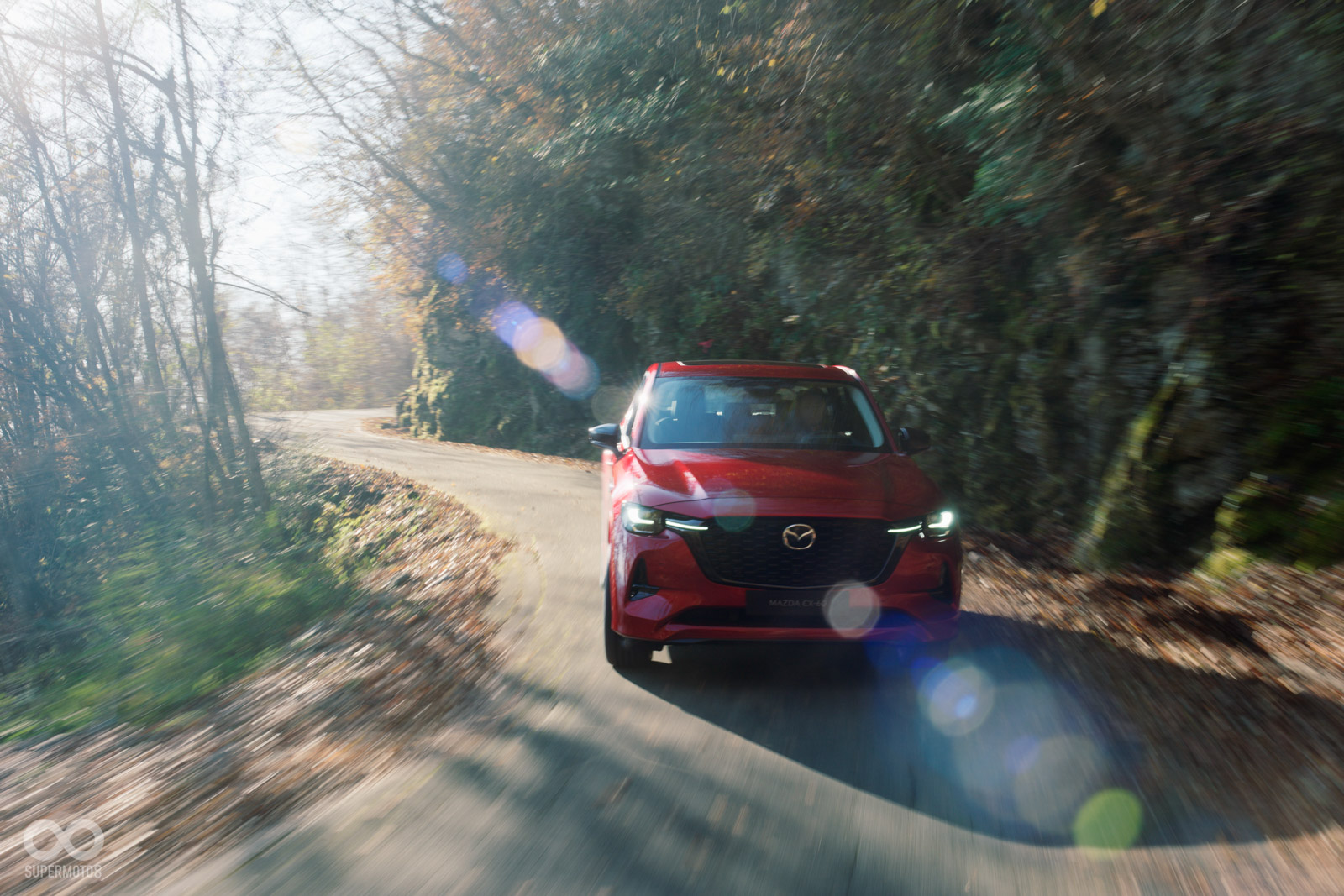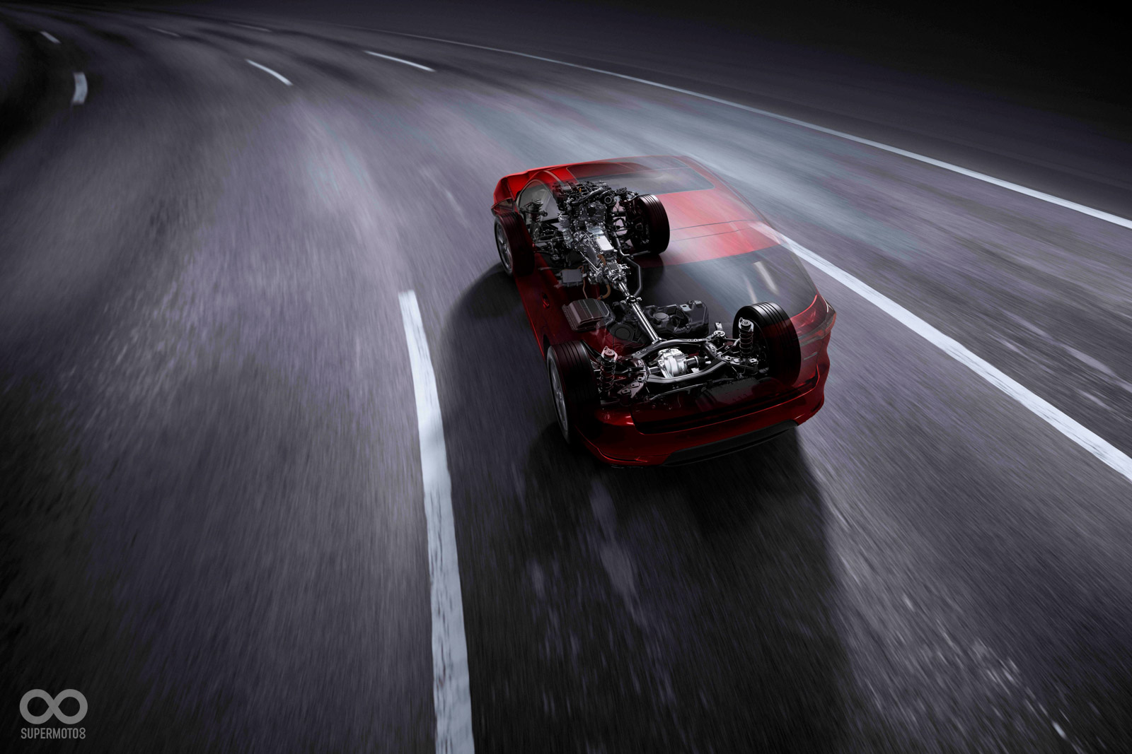 縱置引擎結合後輪驅動系統一直被視為最能突顯車輛操控優越性的經典配置,象徵著對極致機械工藝的浪漫追求。縱向配置引擎除了能優化車身配重外也為複雜的前懸吊系統留下了進一步優化的空間,外型上縮短了前懸比重,雕塑出更加修長流暢的車身,使外觀比例更顯動感。在後輪驅動設計中,前輪專注於轉向,後輪負責提供動力輸出,因此能從容應對更強大的動力輸出,為駕駛者提供更極致的駕馭體驗。因此MAZDA將藉由全新開發的Large Products Group縱置後驅平台技術提供車輛更出色的駕駛動態表現,使其擁有更卓越的牽引力、轉向韌性和操控性。ALL-NEW MAZDA CX-60將絕大部分引擎本體置於前軸後方,使得前後重量均衡分佈,搭配空氣力學與輕量化技術,從而顯著提升了操控性能,提供輕快的起步反應與線性的加速感受,並同時提升油耗表現。