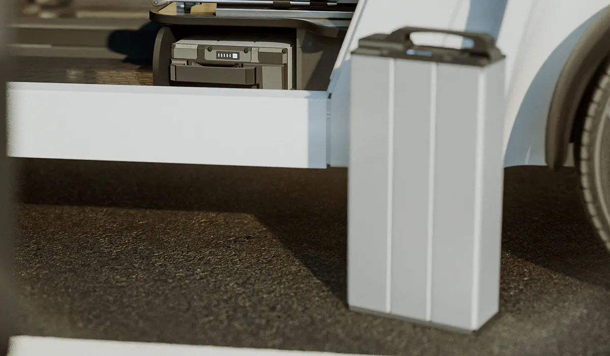 Luvly O整車的重量不到400公斤,不包括兩個可拆卸的鋰電池組,雖然Luvly O提供兩顆電池,但電池一次只能使用一顆,提供兩顆電池是為了提供使用者能在使用時,有另一顆備用電源放在辦公室或住家裡進行充電交替使用。