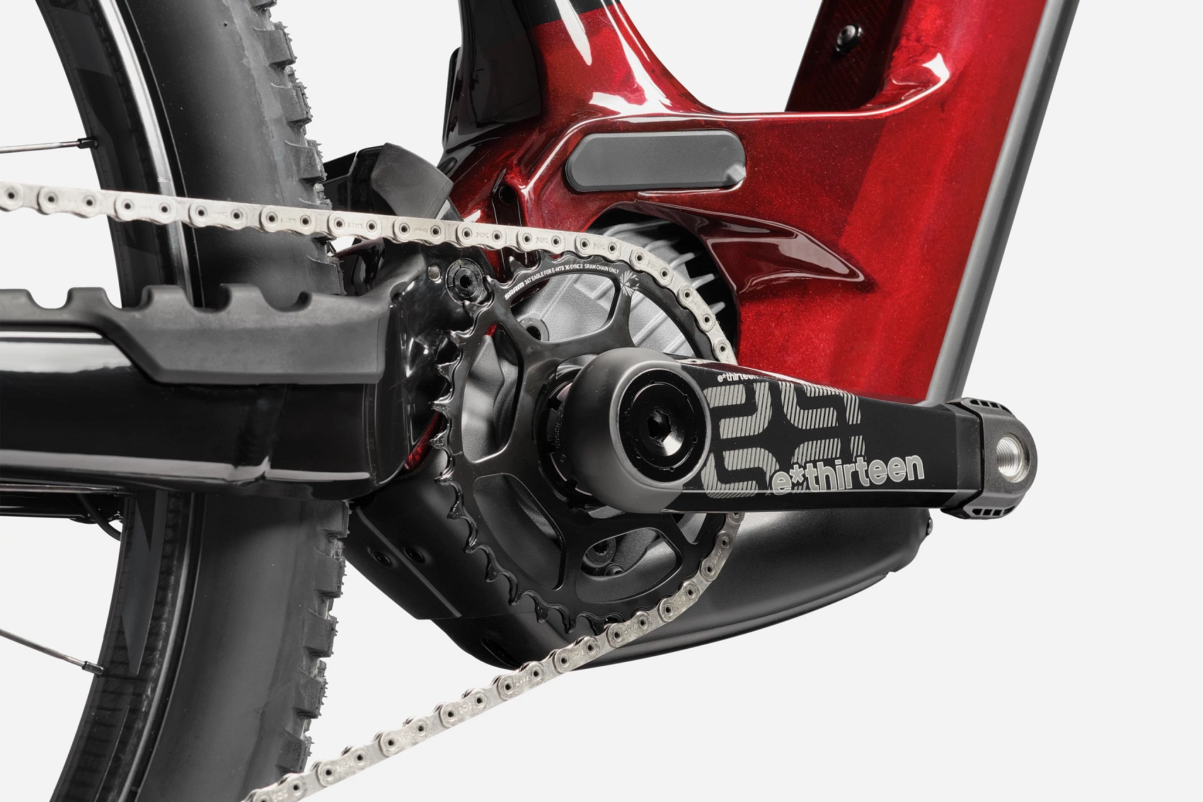 同時,Sram 的 Code Ultimate Stealth 四活塞剎車讓自行車停下來,而直徑 29 英寸(S 號型號為 27.5 英寸)的碳纖維輪框配上 Maxxis 輪胎保持了輕盈的簧下重量。最後,這款自行車搭載了 Sram XX Eagle AXS 變速系統來調節齒輪,由手把上的電子 AXS 模組操作。