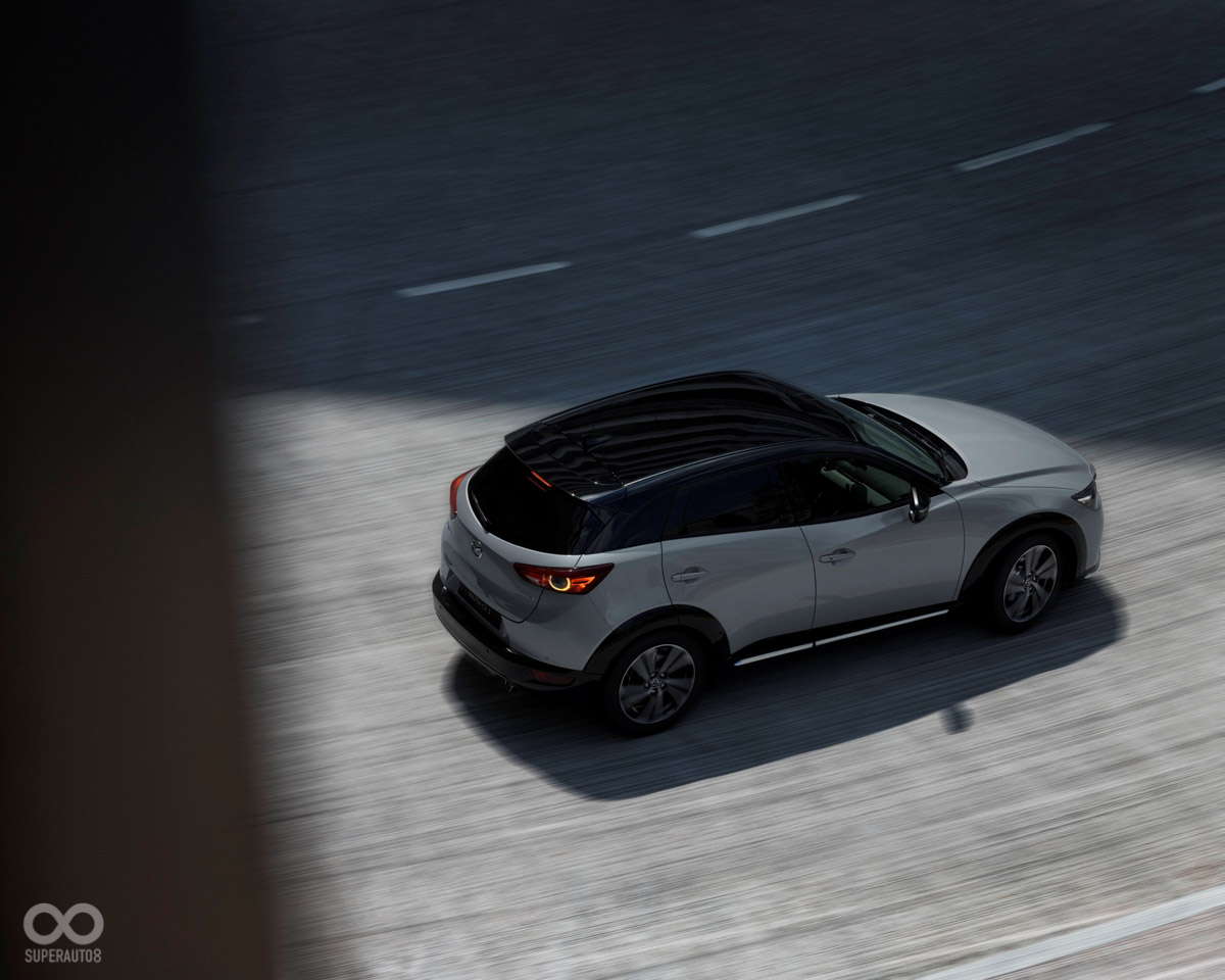 MAZDA CX-3 外觀設計忠於 KODO 的核心精神,除了體現富含生命力的動態之美,承襲日式極簡美學、摒棄多餘綴飾,只為了讓車身比例臻於完美。透過職人雙手,精雕出深具力道的簡約線條,形塑 MAZDA CXḋ3 的強勁姿態。24 年式 MAZDA CX-3 導入全新 20S Vivid Edition 車型,在車輛內外觀皆採用最能彰顯車主自我風格與個人品味的雙色搭配,不僅車頭經典魂動之翼採用爍黑設計,結合 Vivid Edition 專屬曜黑懸浮式車頂、曜黑後視鏡、曜黑環車護板及雙色 18 吋鋁圈,展現超群出眾的獨特魅力及讓人難以忽視的個性主張;內裝配置 Vivid Edition 專屬藍黑雙色內飾搭配麂皮質感運動化座椅,輔以 Vivid Edition 別出新彩的專屬新車色天際灰 (Aero Grey) ,魅力風範由內至外自然流露,也體現 MAZDA CX-3 車主不隨波逐流的自信風采。