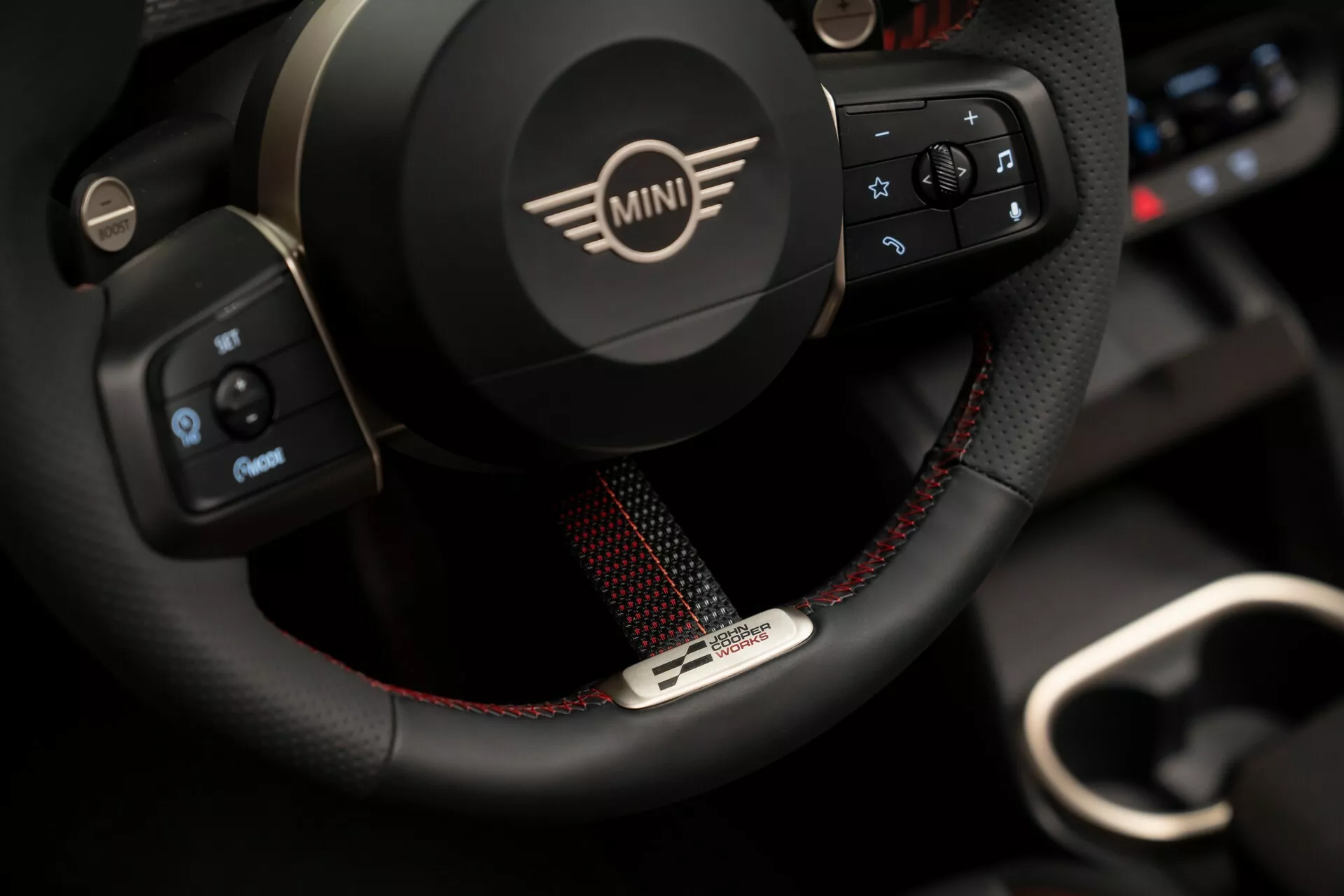在外觀方面,John Cooper Works特仕車以明亮的Chili Red細節點綴車頭,搭配特殊的“JCW Signature Mode” LED頭燈、黑色格柵、C柱的變動和全新尾燈框架,這些使得與其它版本有著鮮明的區別。車內延續運動風格,黑色和紅色元素相互交融,搭配JCW賽車座椅和採用再生聚酯纖維製成的雙色織物質感的儀表板,傳承一貫的熱血氛圍。
