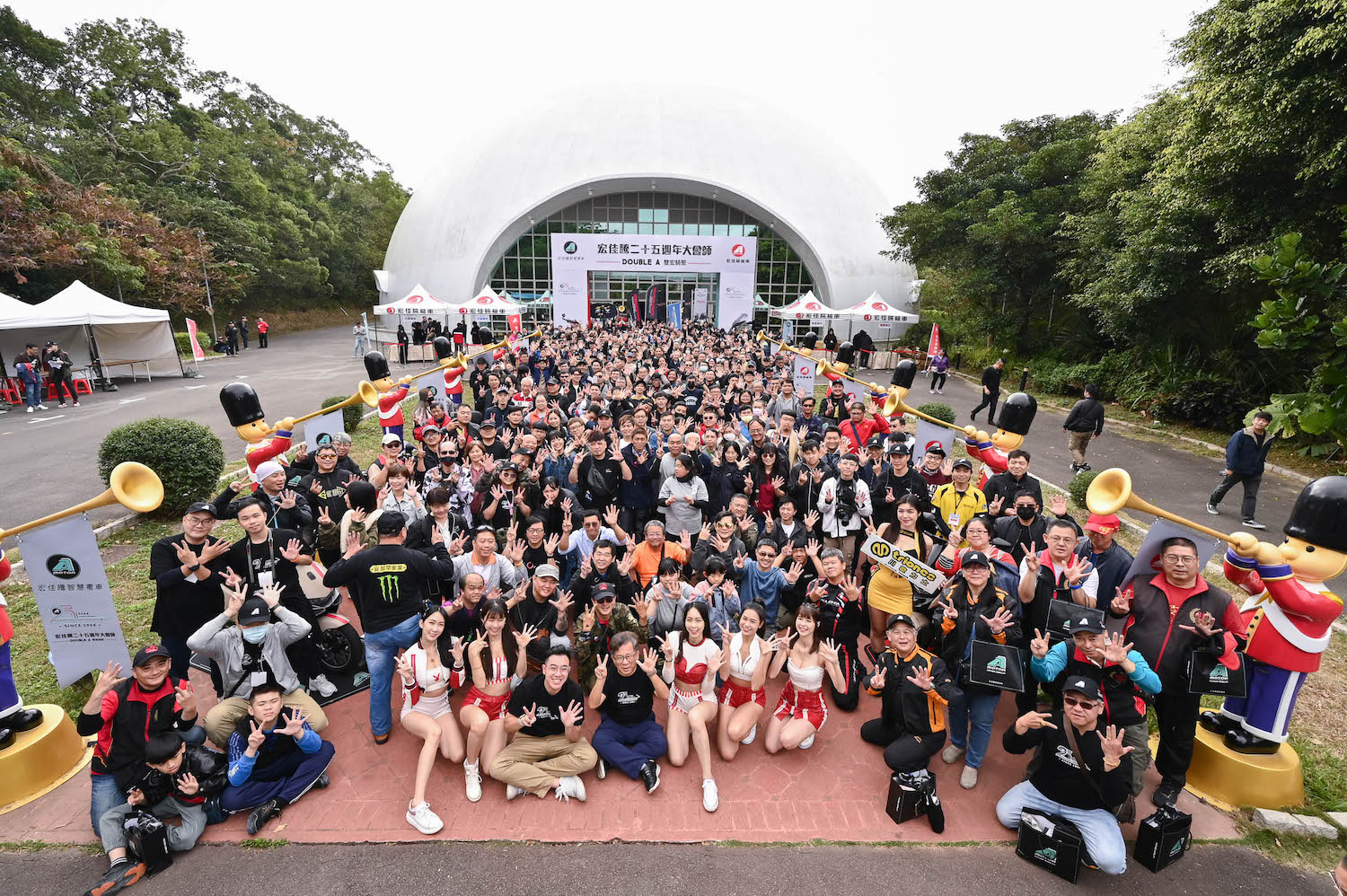 大會師活動甫開放報名旋即額滿,宏佳騰也迅速再加開100位名額,滿足熱情車友的期待,全場吸引逾500名車友及品牌夥伴共慶盛典、熱鬧非凡,除了有盛宴佳餚、25週年限定禮品、活力舞團、Live Band表演、抽獎活動,還有多達18家知名車用精品/人身部品品牌一起參與盛會。
