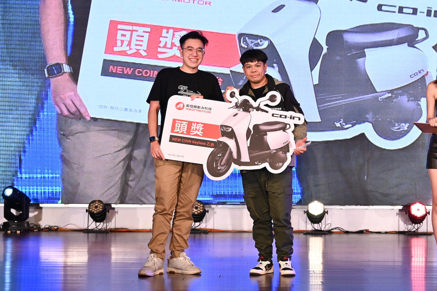 「Double A 雙宏騎聚」還邀請到知名舞團FUNKY GIRLS及Live Band帶來精彩表演,車主沉浸在歡樂的氛圍中,共同享受著25週年的狂歡時刻;現場除了席開51桌盛宴外,趣味十足的團康遊戲、總價值超過30萬元的抽獎活動,高中獎率讓所有車主們熱情爆棚、滿載而歸,最終由來自苗栗的元老級電車車主獲得宏佳騰提供的大獎-New CO-IN Keyless版(價值$92,800元),成為最大贏家。