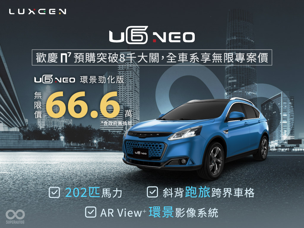 - U6 NEO環景勁化版無限專案價66.6萬,此專案價格含舊換新退稅補助。