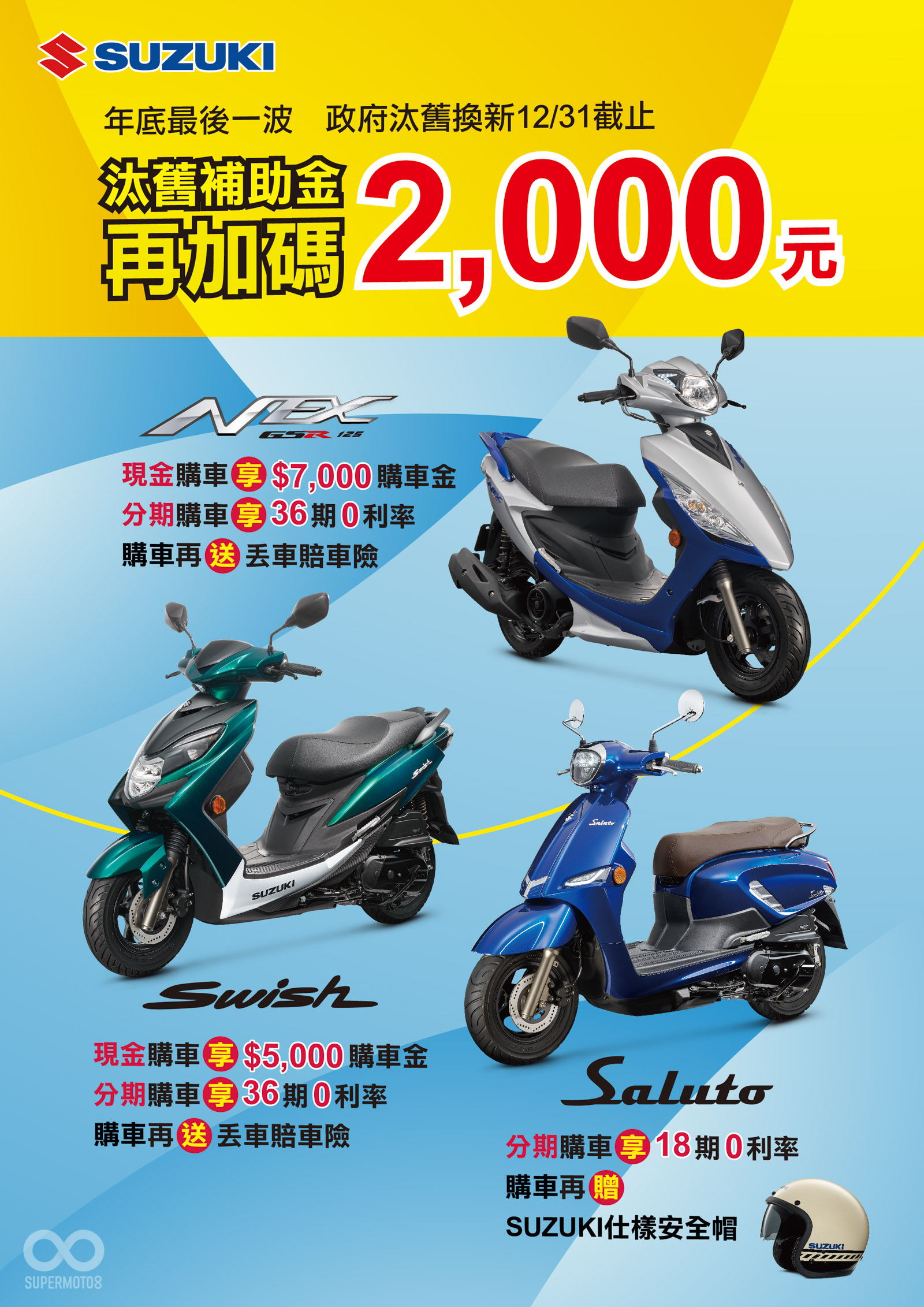 年底最後一波 政府汰舊換新補助12/31截止 SUZUKI『汰舊補助金再加碼2,000元』
