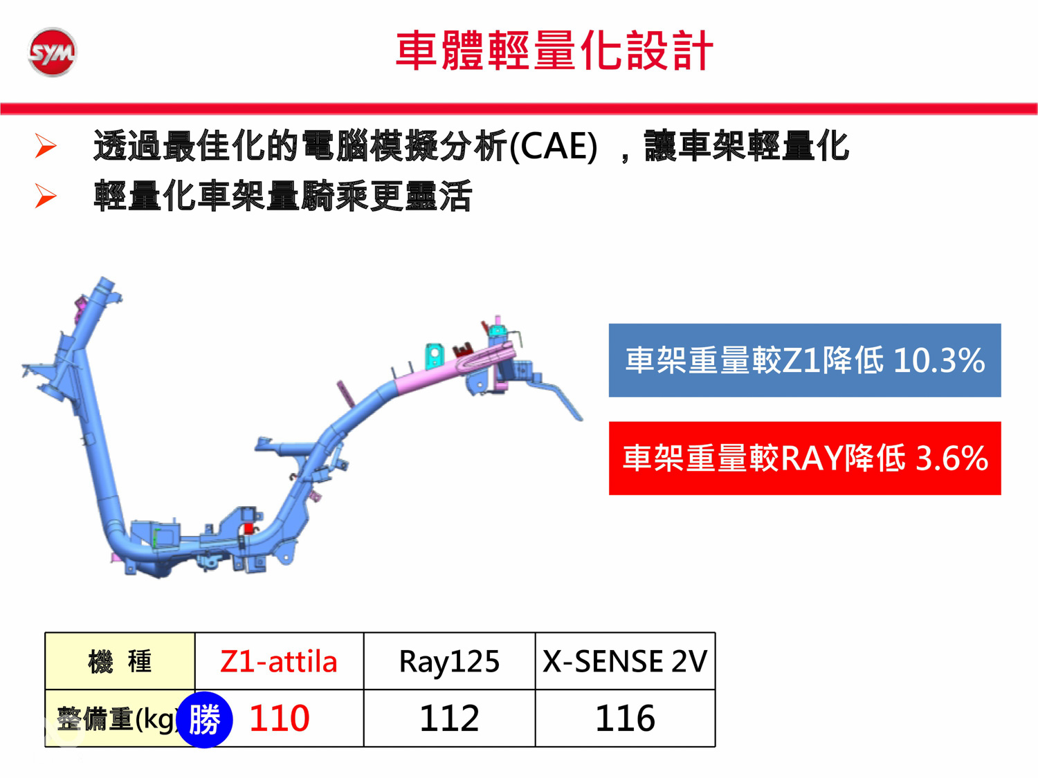 Z1 Attila在造型的設計上走的是較為流線,速度感強烈的運動風格,搭配上最新開發的Clean Power引擎,強勁的動力更是讓他成了台貨真價實的鋼砲,但在這的看似硬派的框架之下SYM依舊為他保留了細膩的一面,低矮的座高、輕盈的車重與貼心的便利配備,面面俱到的考量,也為它增添了幾分親和力,使Z1 Attila的客群不再侷限於男性,而是台男女皆宜的都會輕跑。