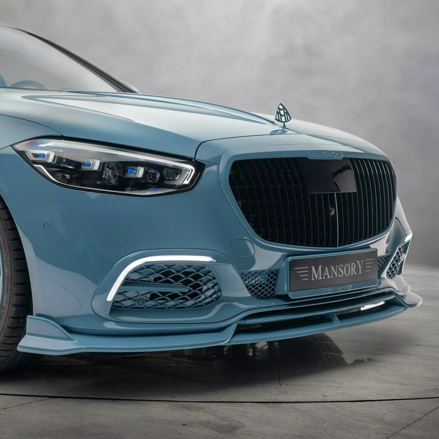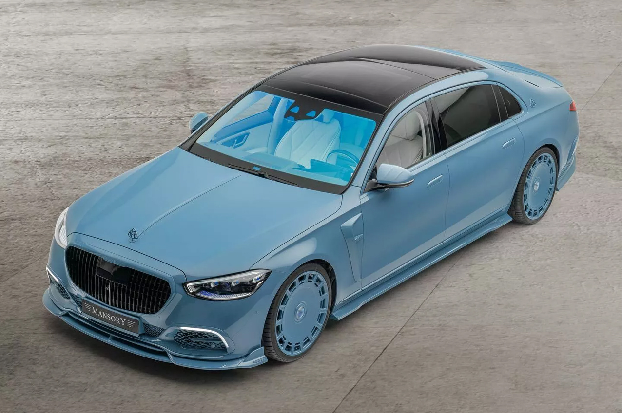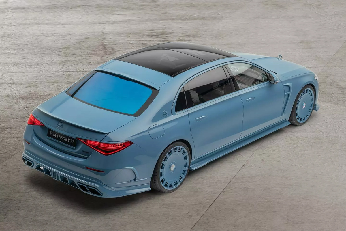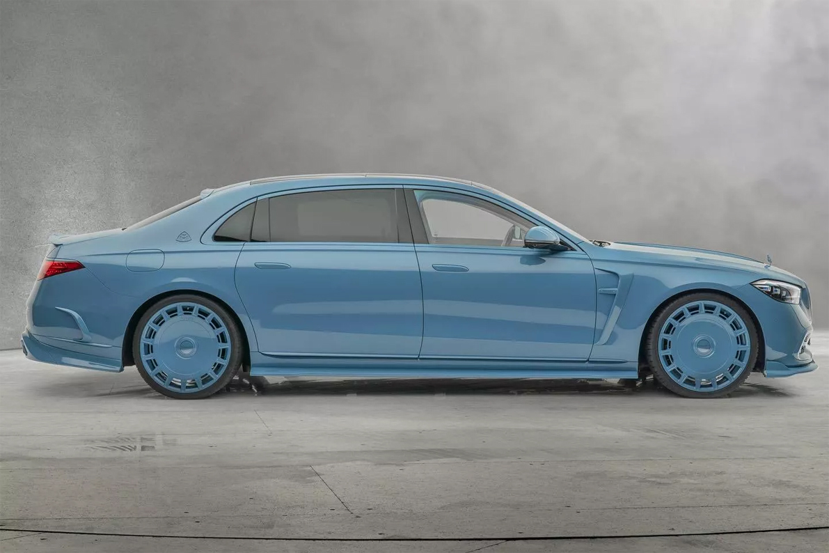 這輛由Mansory所改裝後的Mercedes-Maybach S 680,最引人注目的就屬那獨特的「中國藍」塗裝。儘管藍色本身相對低調,但這款中國藍塗裝幾乎涵蓋了所有外部表面,包括引人入勝的玻璃頂和前保桿格柵,藍色取代原本保桿的鍍鉻材質。另外,那巨大經典鐵餅鋁圈也採用相同的配色,使這輛S 680在眾多車輛中也掩蓋不住他的特別。