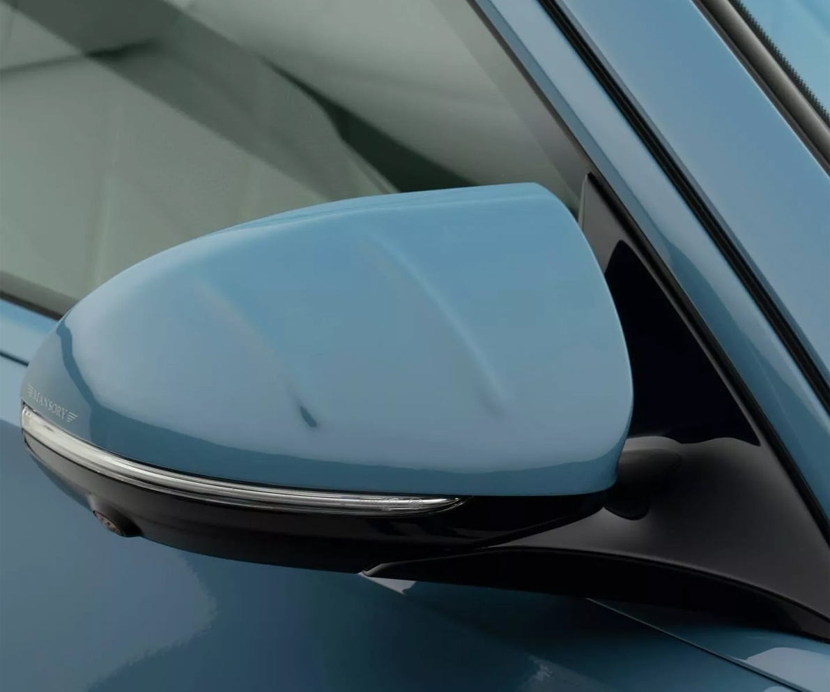 除了顏色,車身套件的設計同樣吸引人,雖不是Mansory過去作品中最狂妄激進,但在車頭,新的進氣口與藍色進氣格柵吸引車迷眼光。矚目的亮黑色格柵和嵌入前保險槓的全新 LED 日行燈使整體造型更加生動。此外,一個戲劇性的前擾流分流器進一步提升了整體視覺效果。