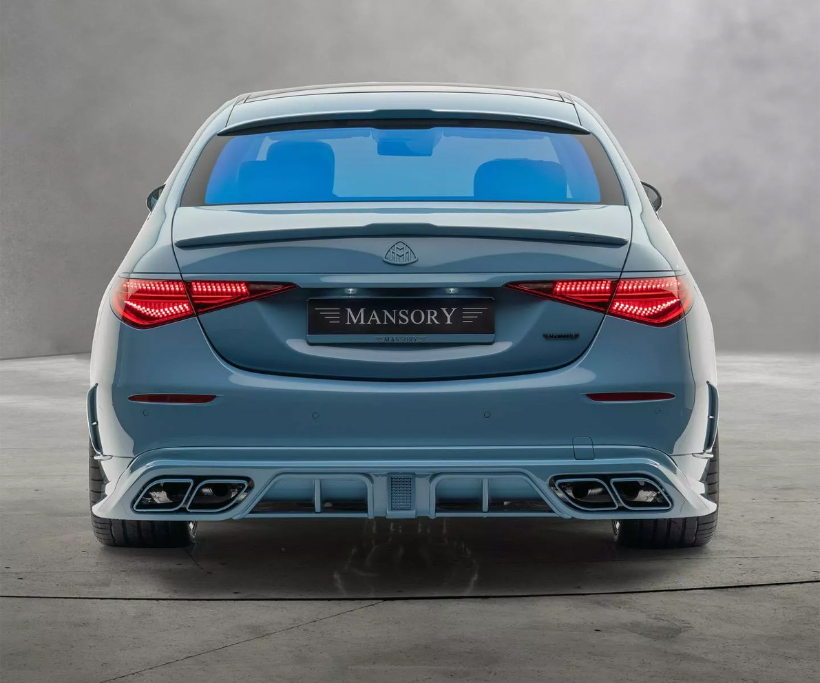 在車輛的側邊,車側裙被向外延伸,這使得上下車時要小心不要踩到。前葉子板上增加散熱孔,這樣配置鮮少出現在豪華車系板金上面。Mansory還在Mercedes-Maybach S 680後端進行了微妙的改動,添加了一個突出導流板和四出排氣管與車尾擾流整合,呈現出更具運動感的風格。